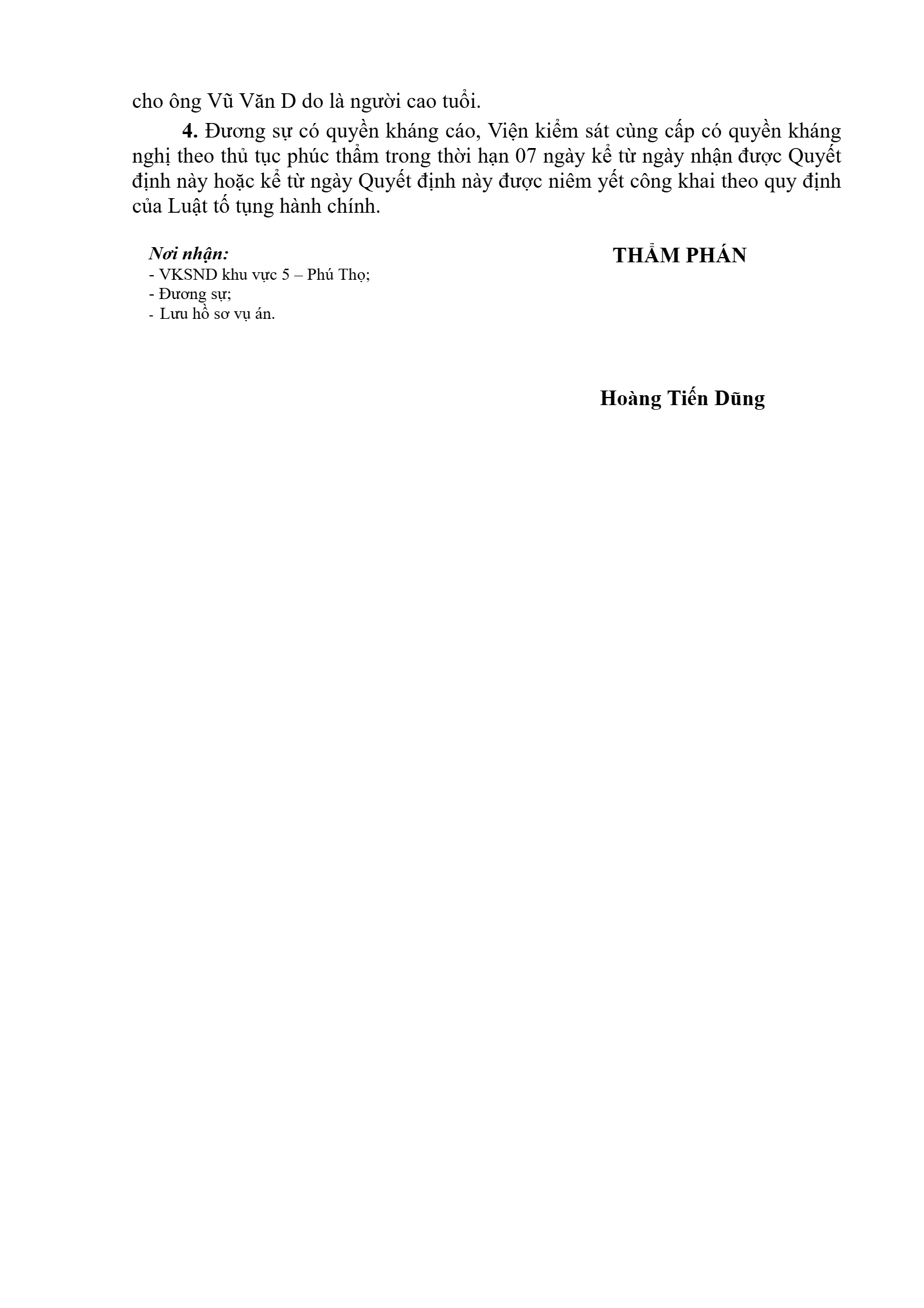 | Tòa án xét xử: | Tòa án nhân dân khu vực 5 - Phú Thọ, tỉnh Phú Thọ |