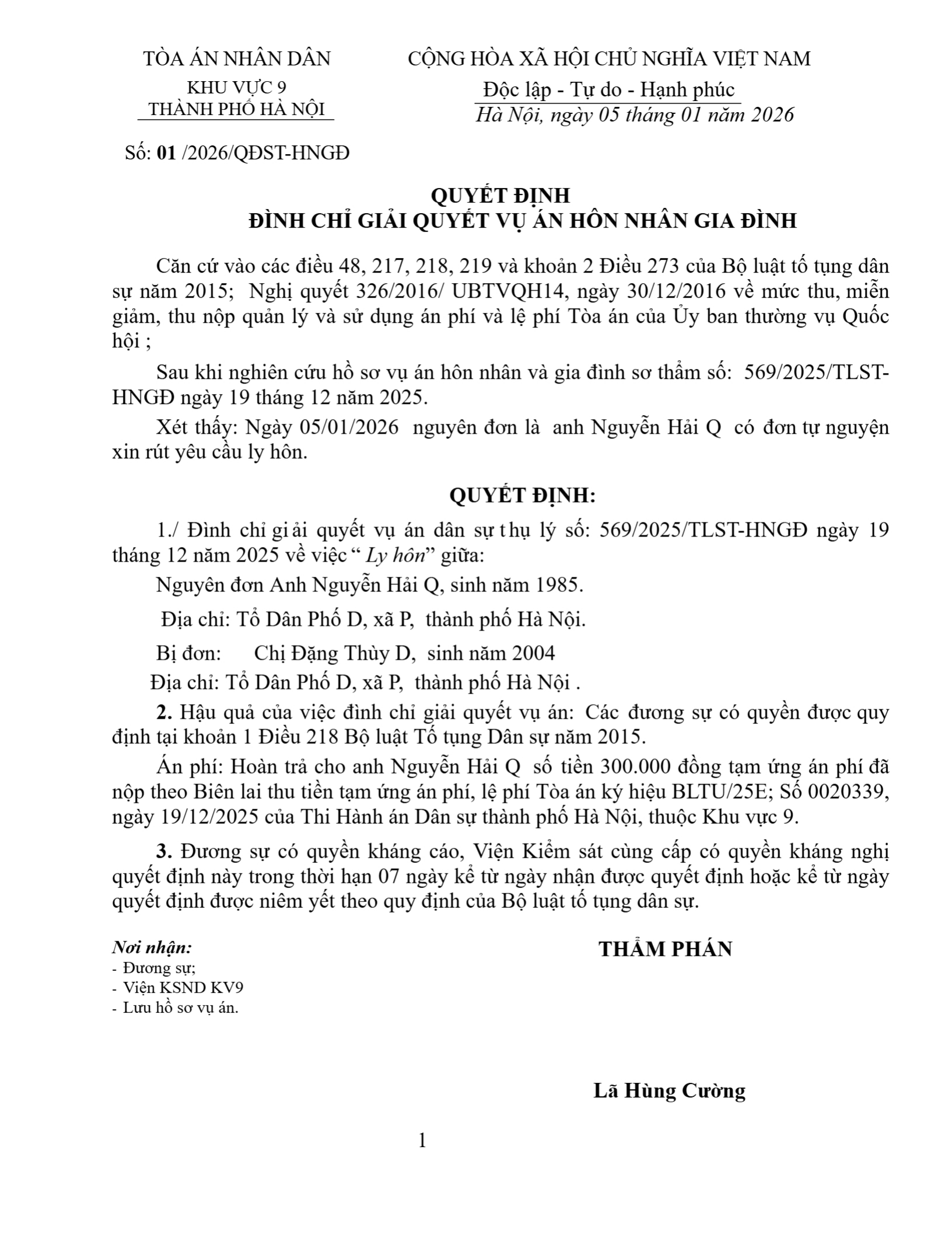 | Số hiệu: | 01/2026/QĐST-HNGĐ |