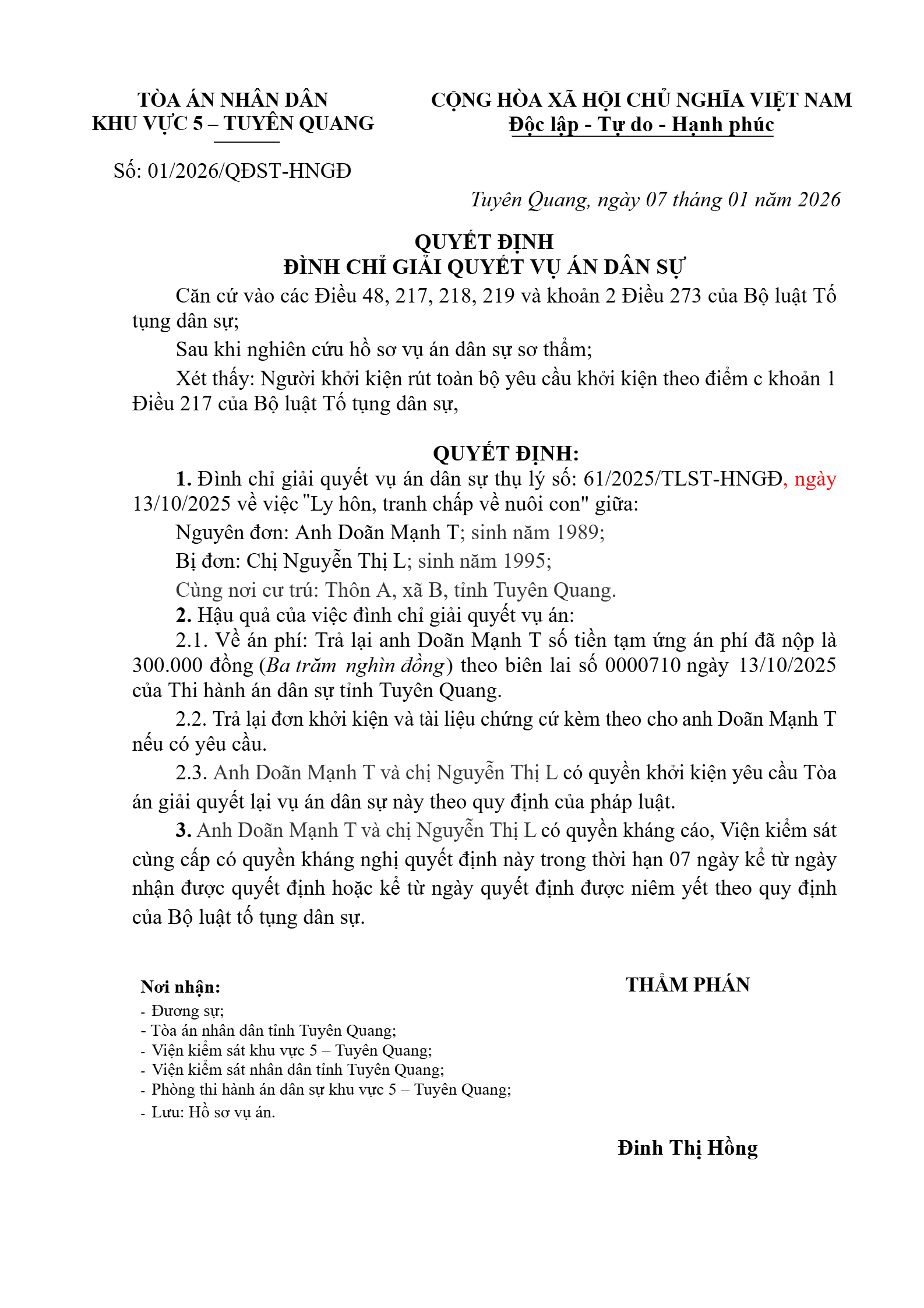 | Số hiệu: | 01/2026/QĐST-HNGĐ |