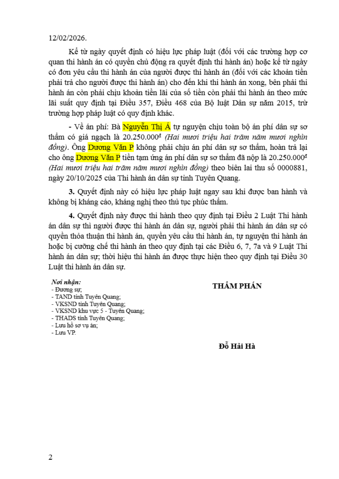 | Tòa án xét xử: | Tòa án nhân dân khu vực 5 - Tuyên Quang, tỉnh Tuyên Quang |