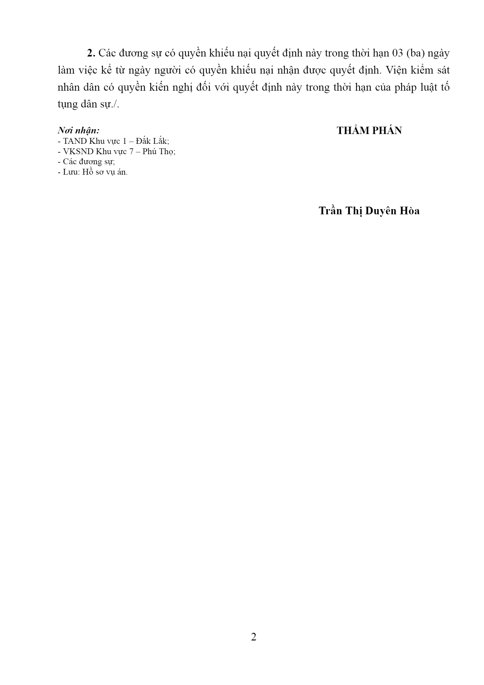Quyết định số 02/2025/QĐST-DS ngày 22/12/2025 của Tòa án nhân dân khu vực 7 - Phú Thọ, tỉnh Phú Thọ về tranh chấp hợp đồng tín dụng