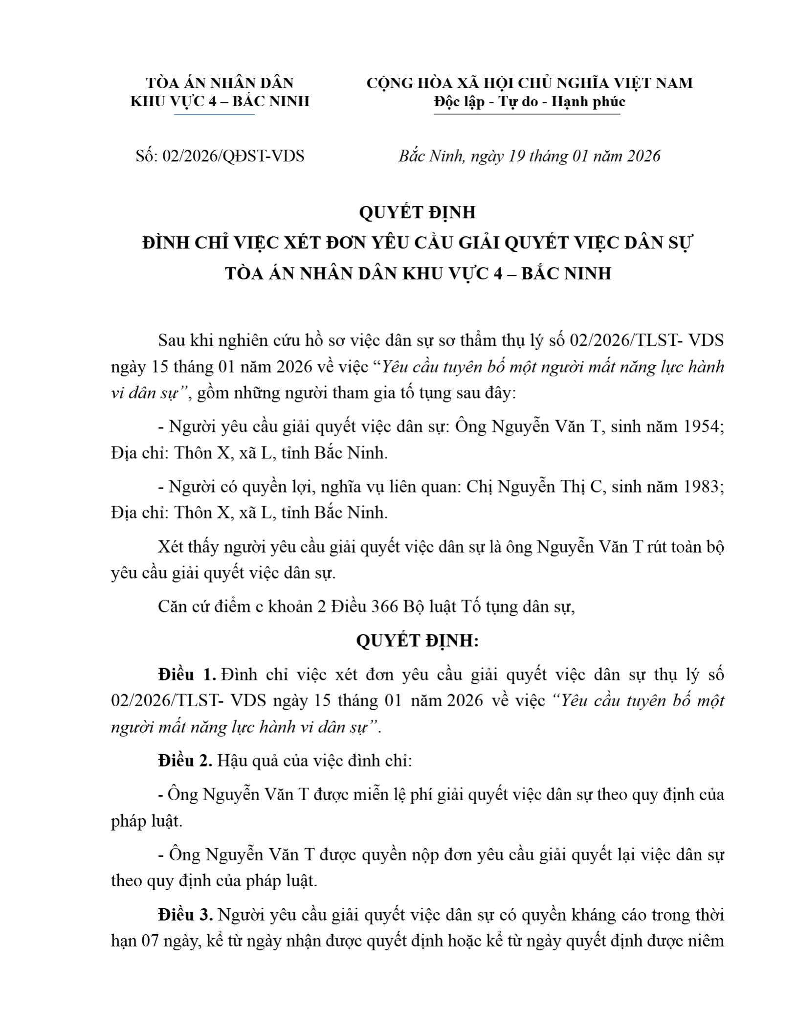 Quyết định số 02/2026/QĐST-DS