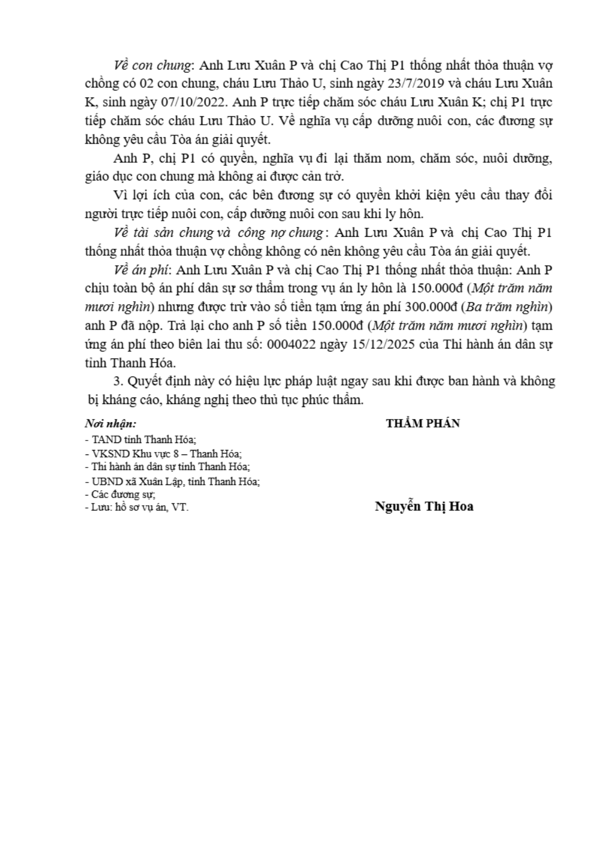 | Thông tin về vụ/việc: | 42. Ly hôn P - P |