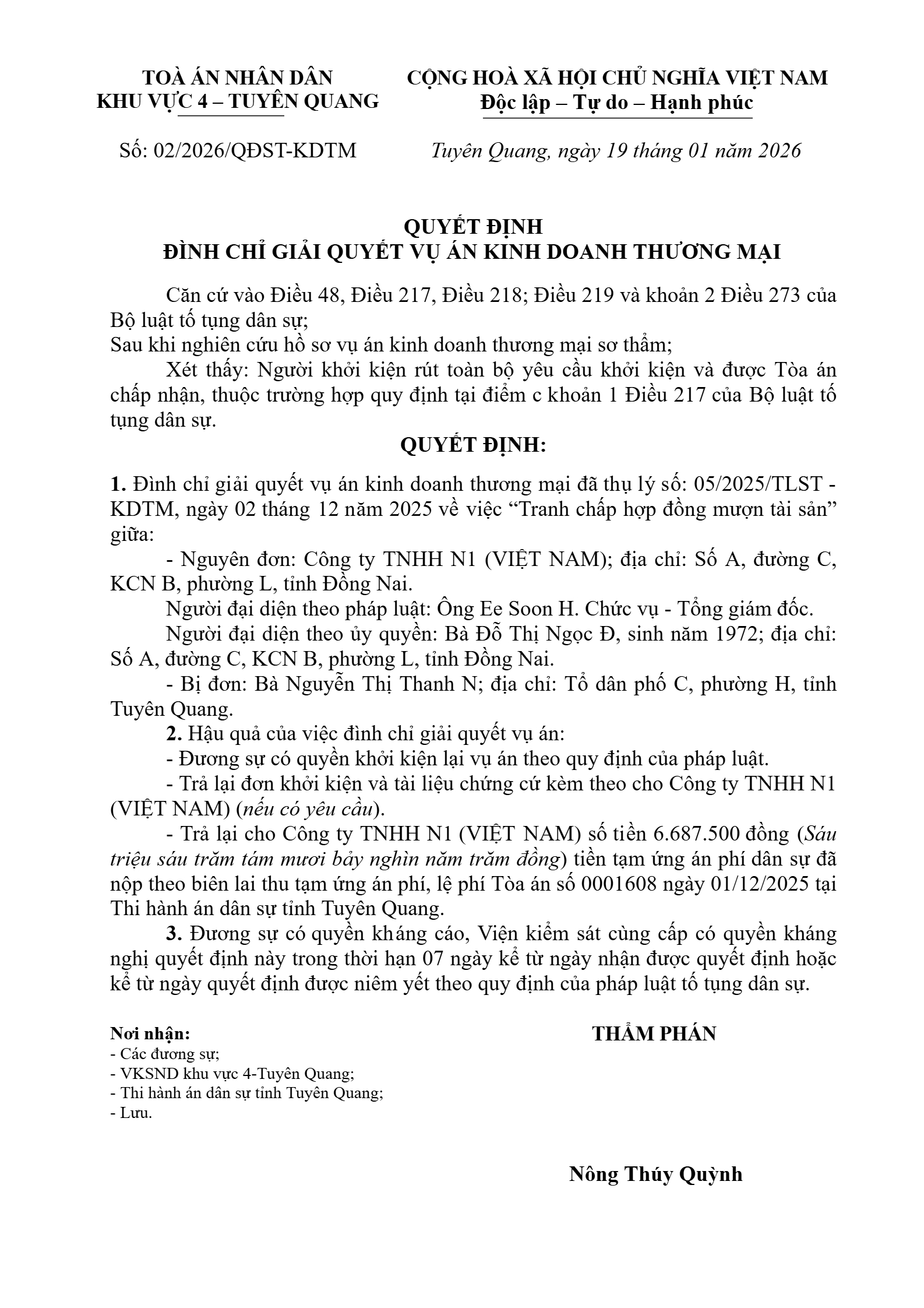 Quyết định số 02/2026/QĐST-KDTM