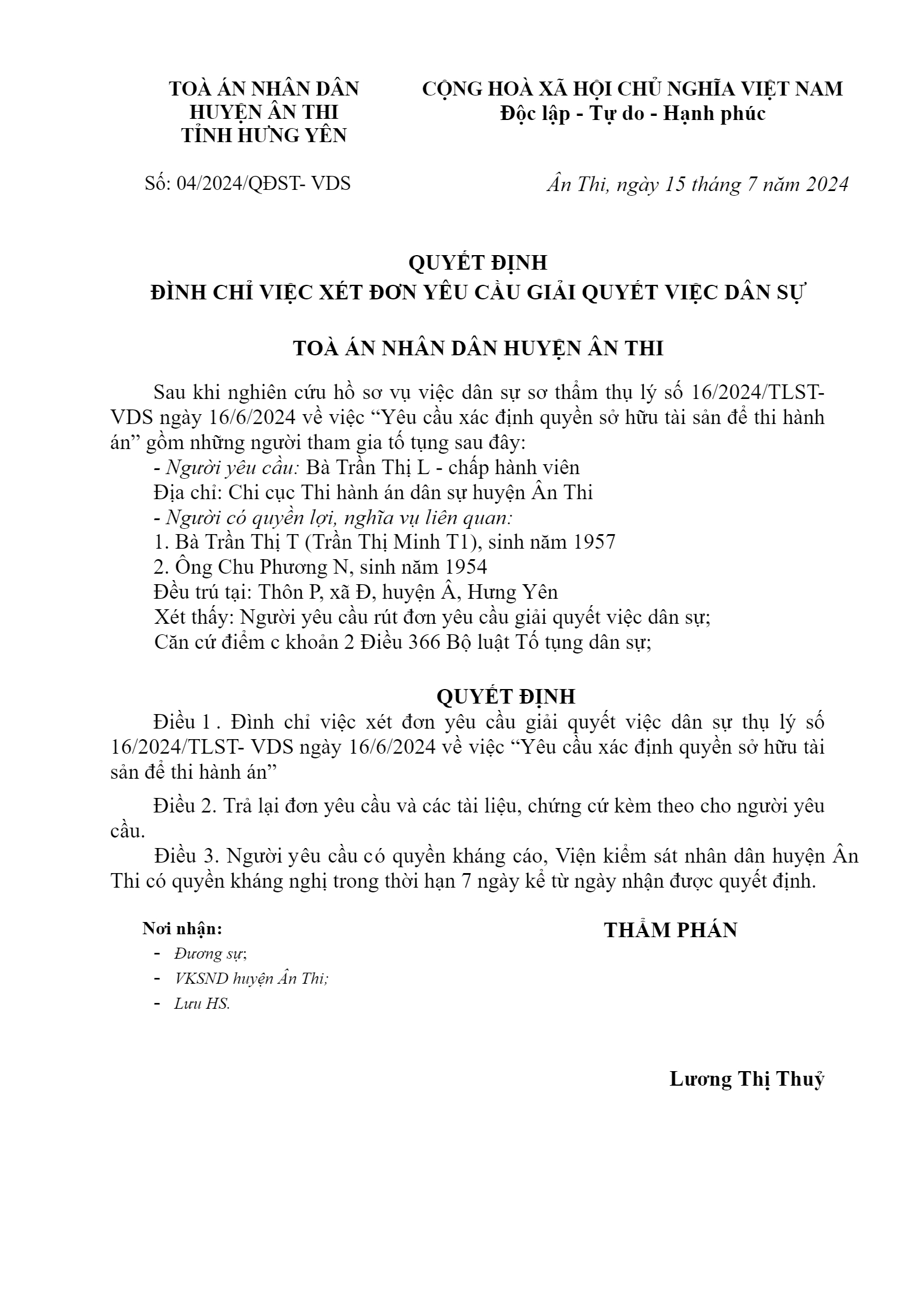 | Số hiệu: | 04/2024/QĐST-DS |