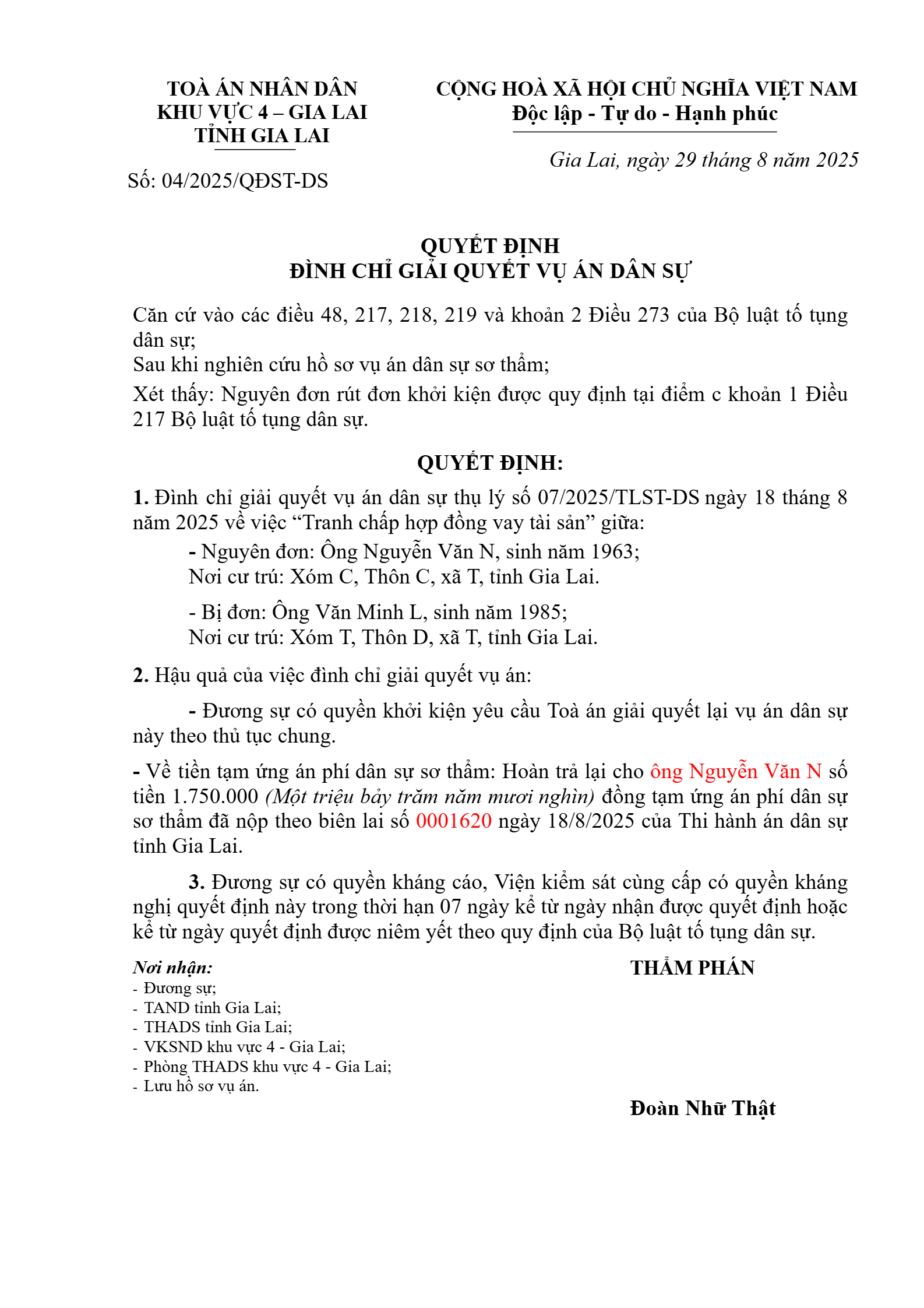 | Số hiệu: | 04/2025/QĐST-DS |