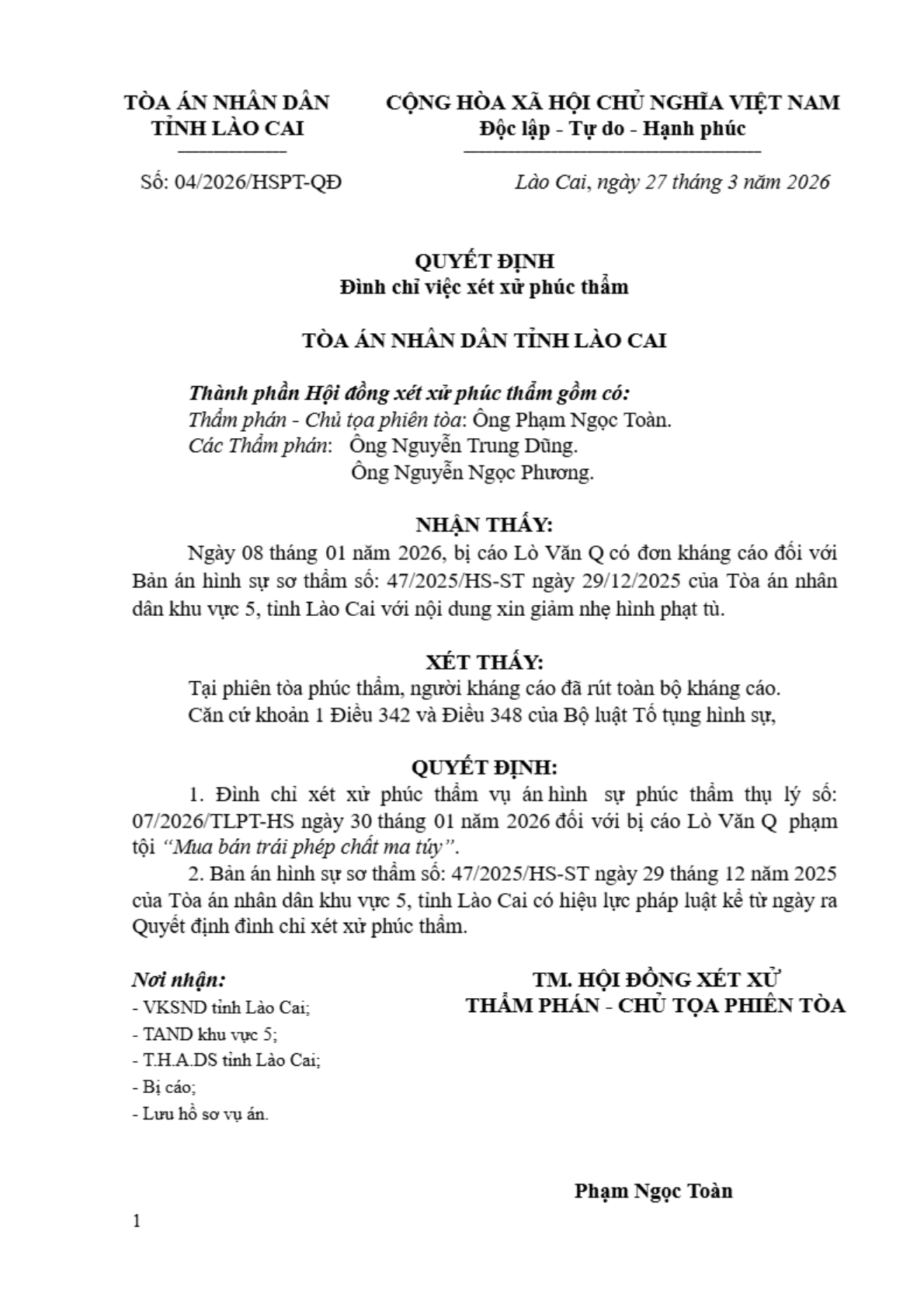 Quyết định số 04/2026/QĐPT-HS ngày 27/03/2026 của TAND tỉnh Lào Cai