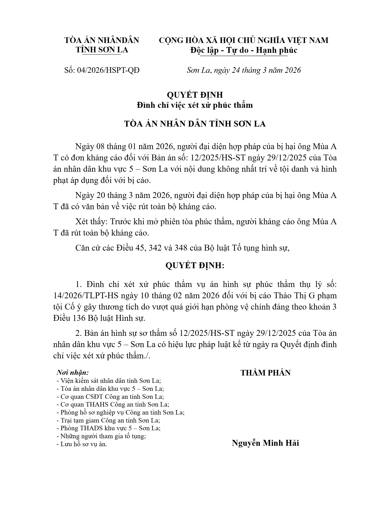 Quyết định số 04/2026/QĐPT-HS ngày 24/03/2026 của TAND tỉnh Sơn La về phạm tội