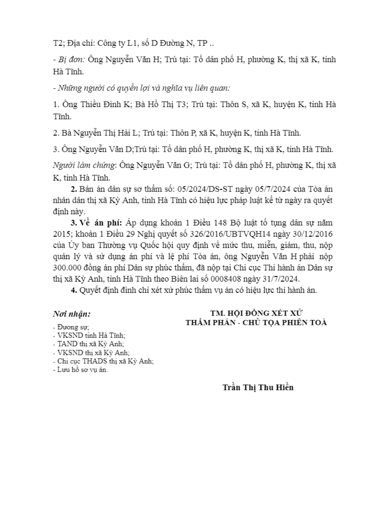 | Tòa án xét xử: | TAND tỉnh Hà Tĩnh |
