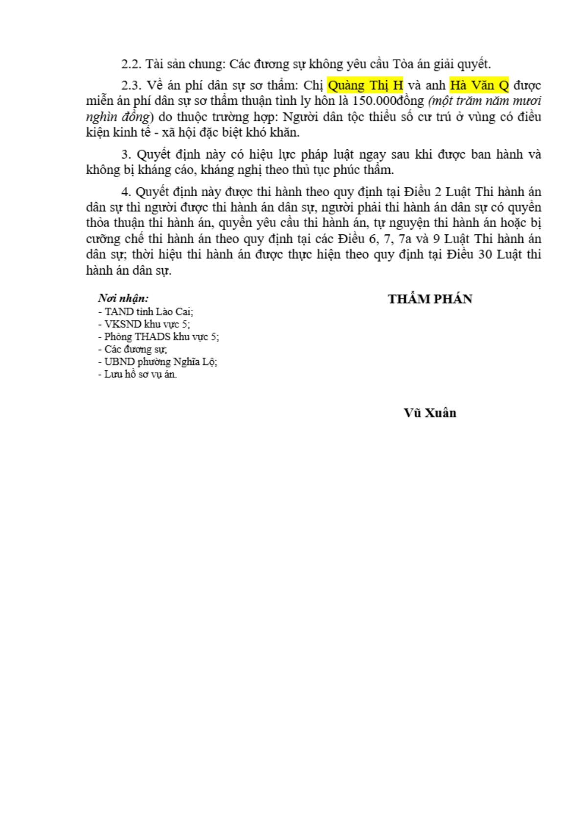 | Thông tin về vụ/việc: | Chị Quàng Thị Hoa xin ly hôn anh Hà Văn Quỳnh |
