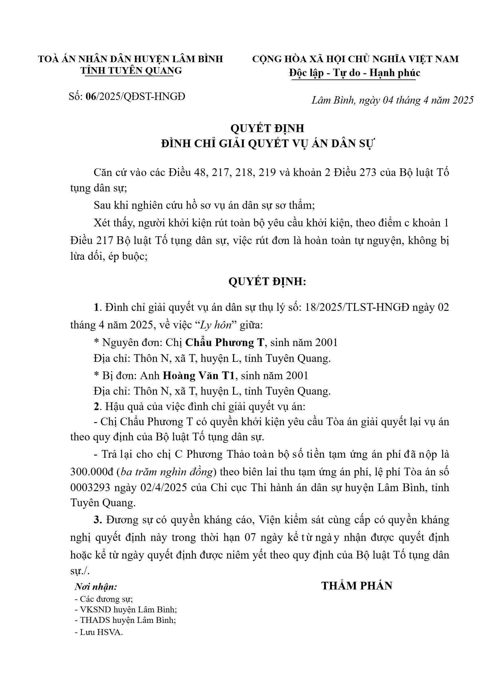 | Số hiệu: | 06/2025/QĐST-HNGĐ |