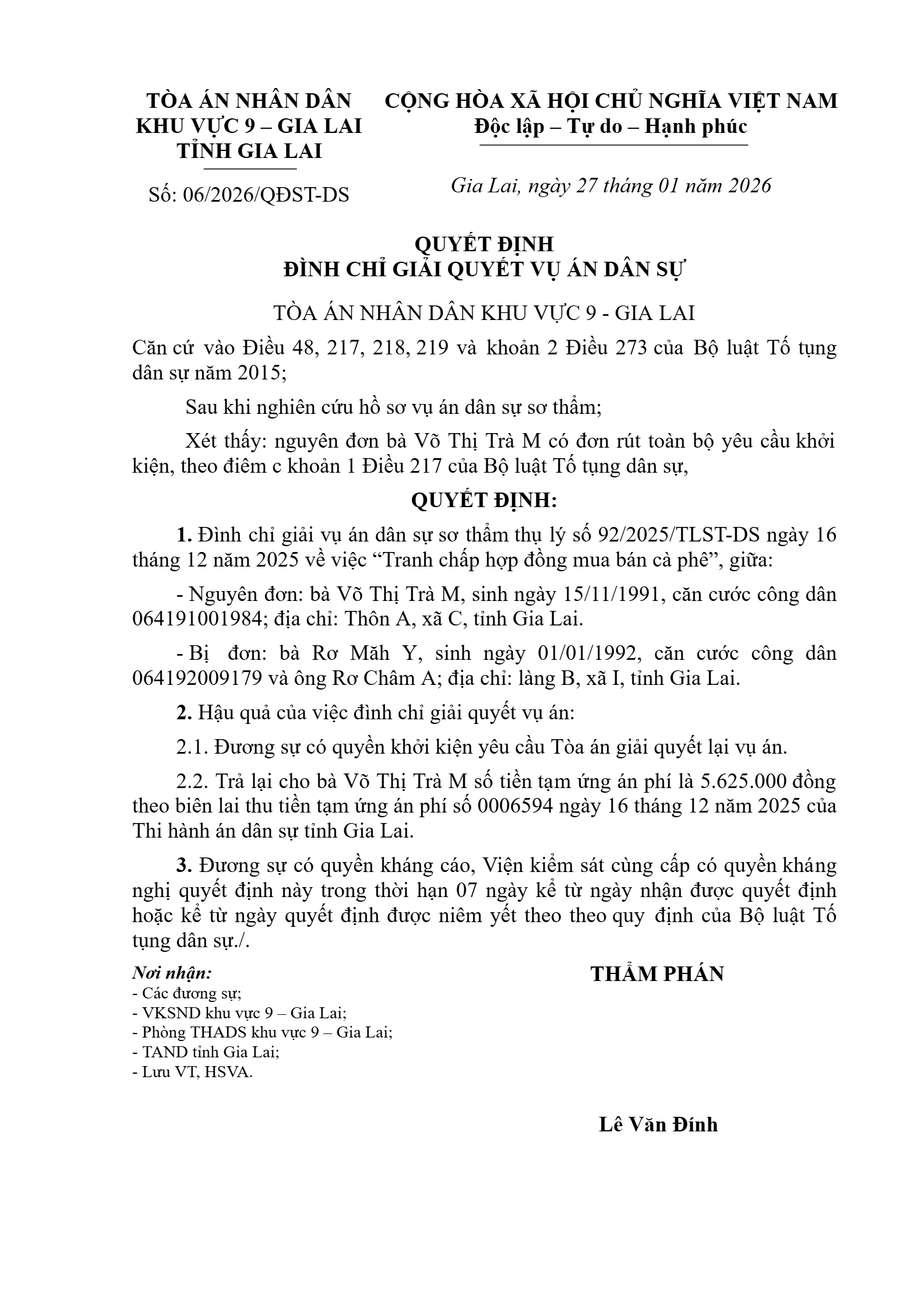 Quyết định số 06/2026/QĐST-DS ngày 27/01/2026 của Tòa án nhân dân khu vực 9 - Gia Lai, tỉnh Gia Lai về tranh chấp hợp đồng trao đổi tài sản