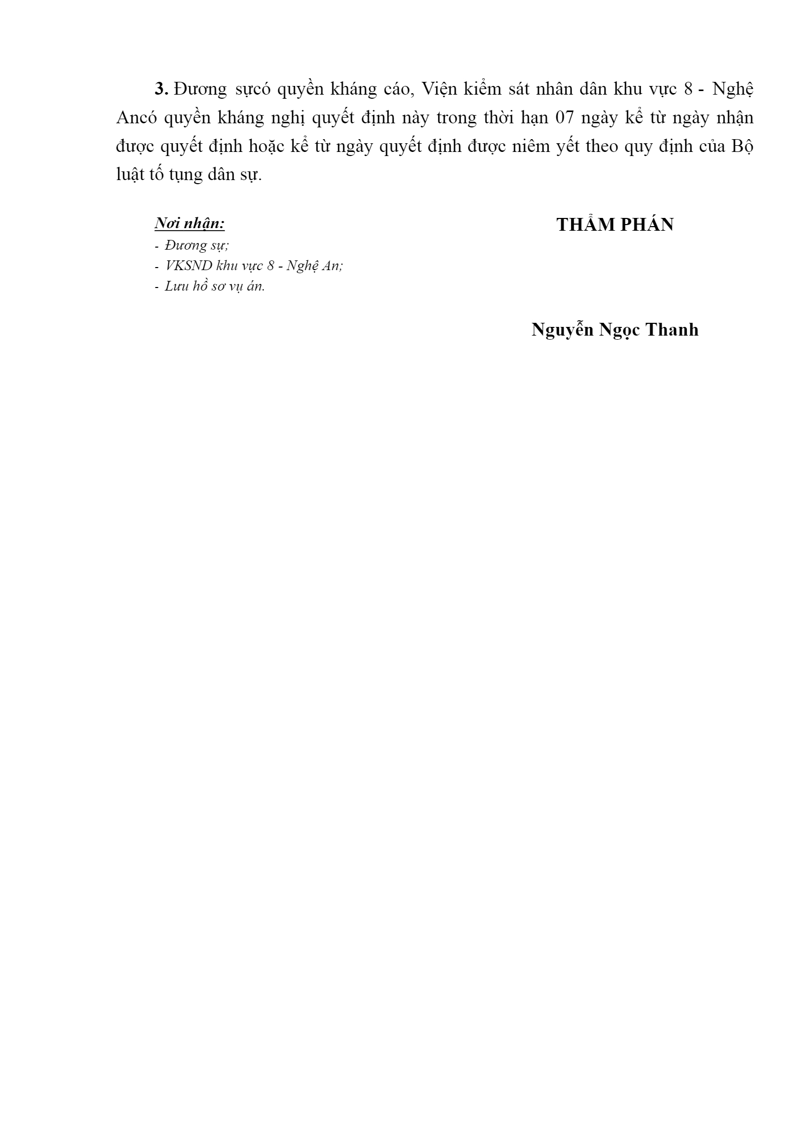 | Tòa án xét xử: | Tòa án nhân dân khu vực 8 - Nghệ An, tỉnh Nghệ An |