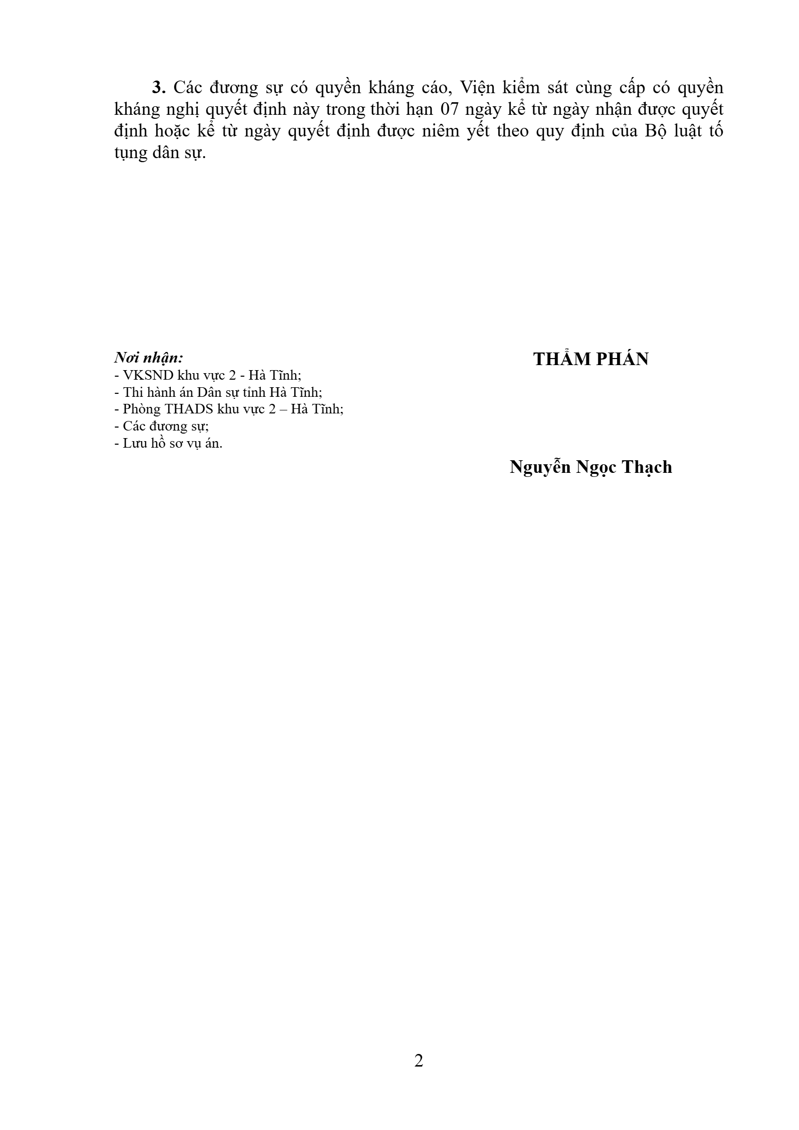 | Tòa án xét xử: | Tòa án nhân dân khu vực 2 - Hà Tĩnh, tỉnh Hà Tĩnh |