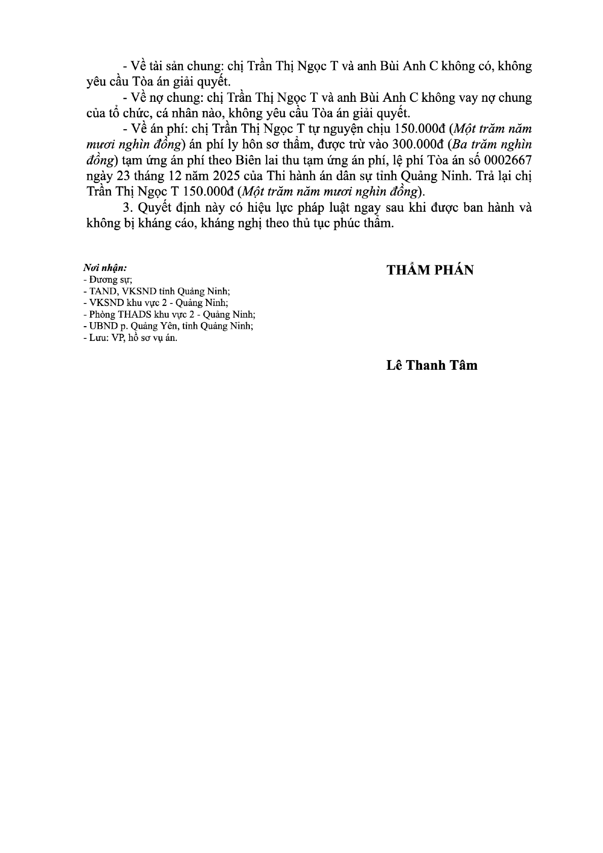 | Tòa án xét xử: | Tòa án nhân dân khu vực 2 - Quảng Ninh, tỉnh Quảng Ninh |