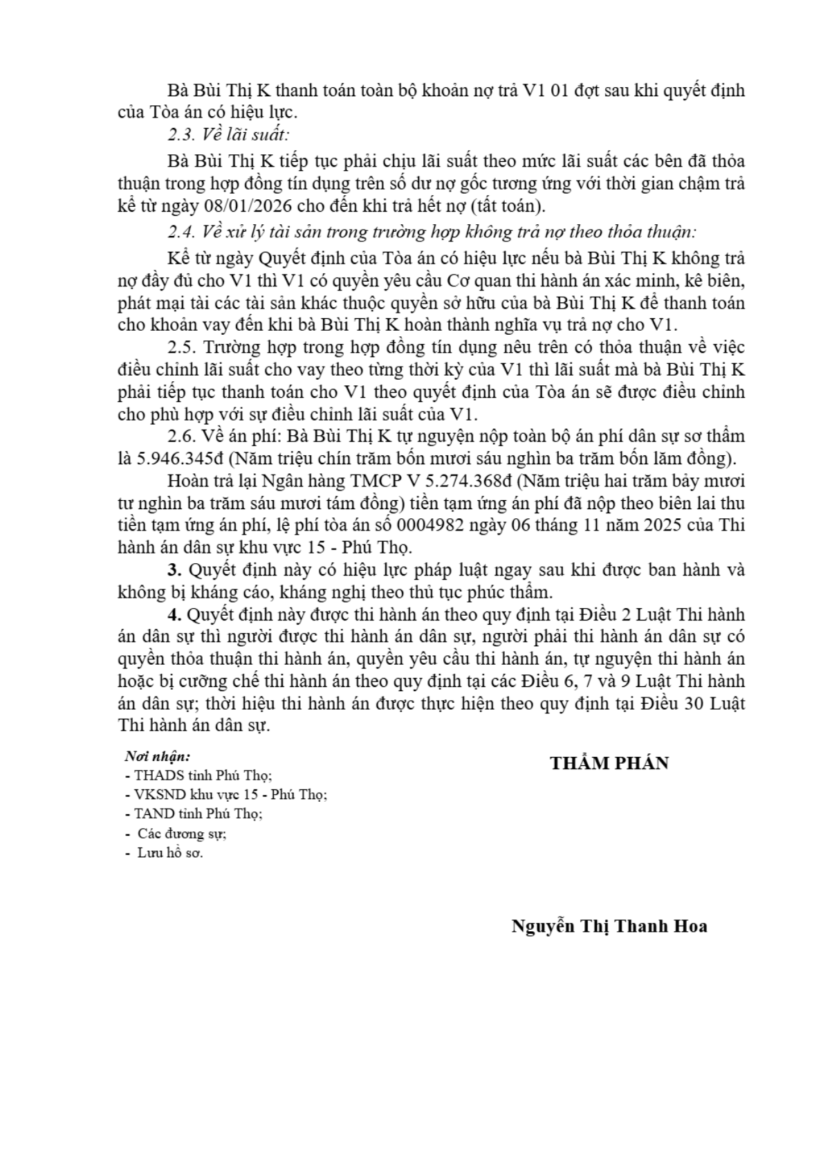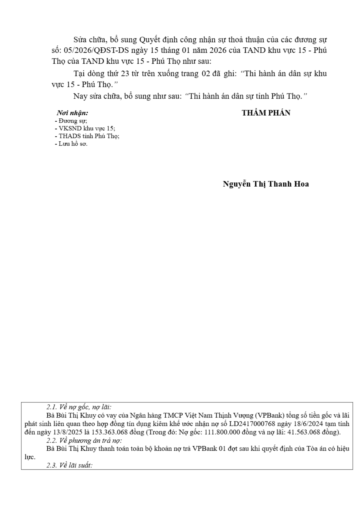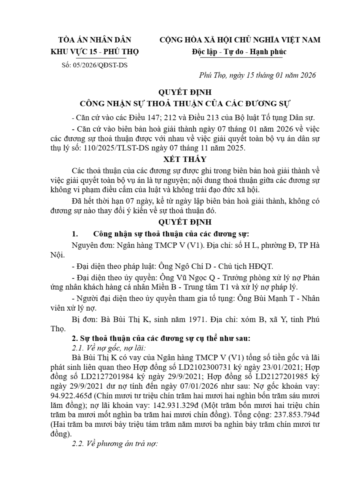 | Tòa án xét xử: | Tòa án nhân dân khu vực 15 - Phú Thọ, tỉnh Phú Thọ |