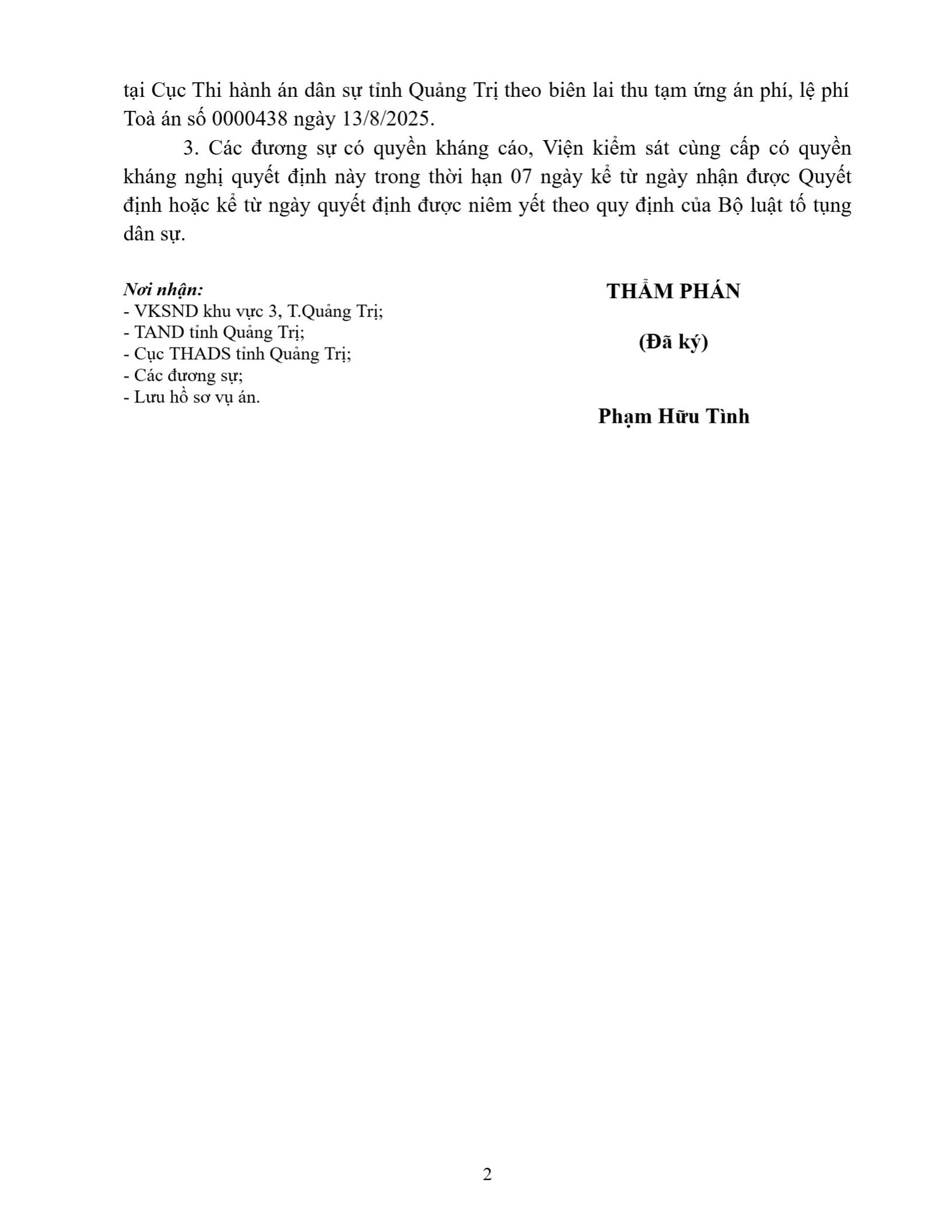 | Tòa án xét xử: | Tòa án nhân dân khu vực 3 - Quảng Trị, tỉnh Quảng Trị |