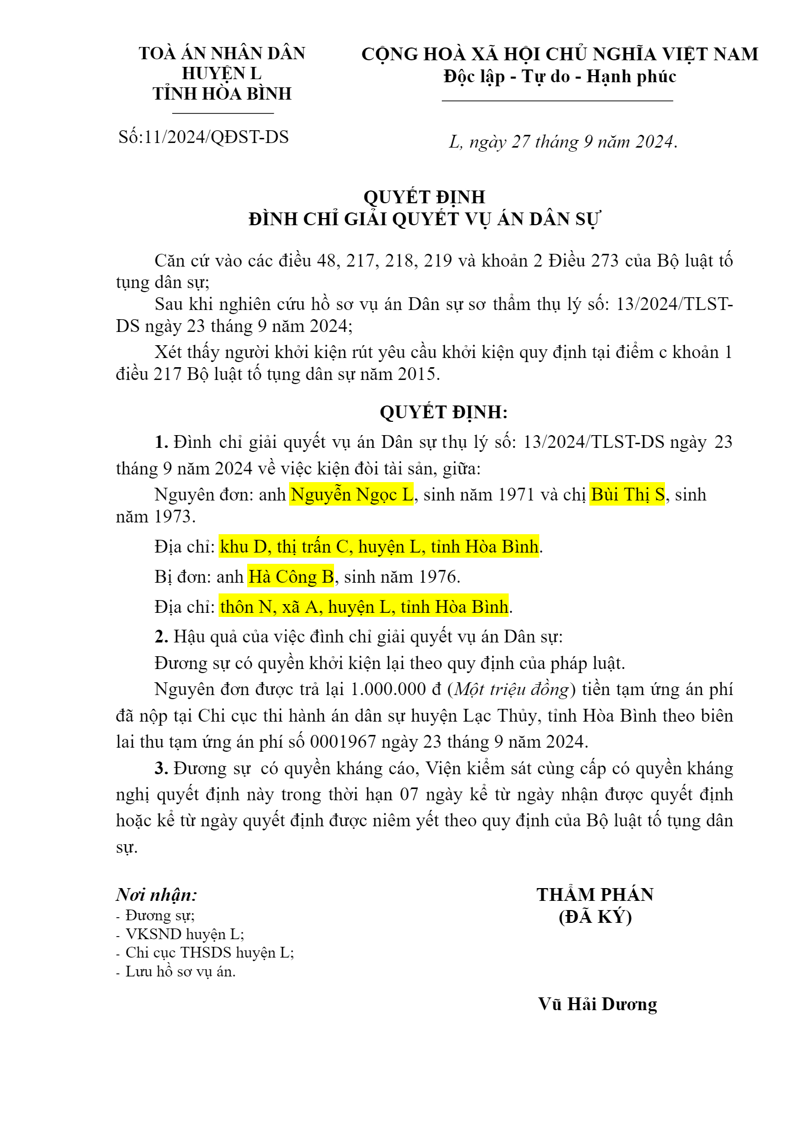 | Tòa án xét xử: | TAND huyện Lạc Thủy (TAND tỉnh Hòa Bình) |