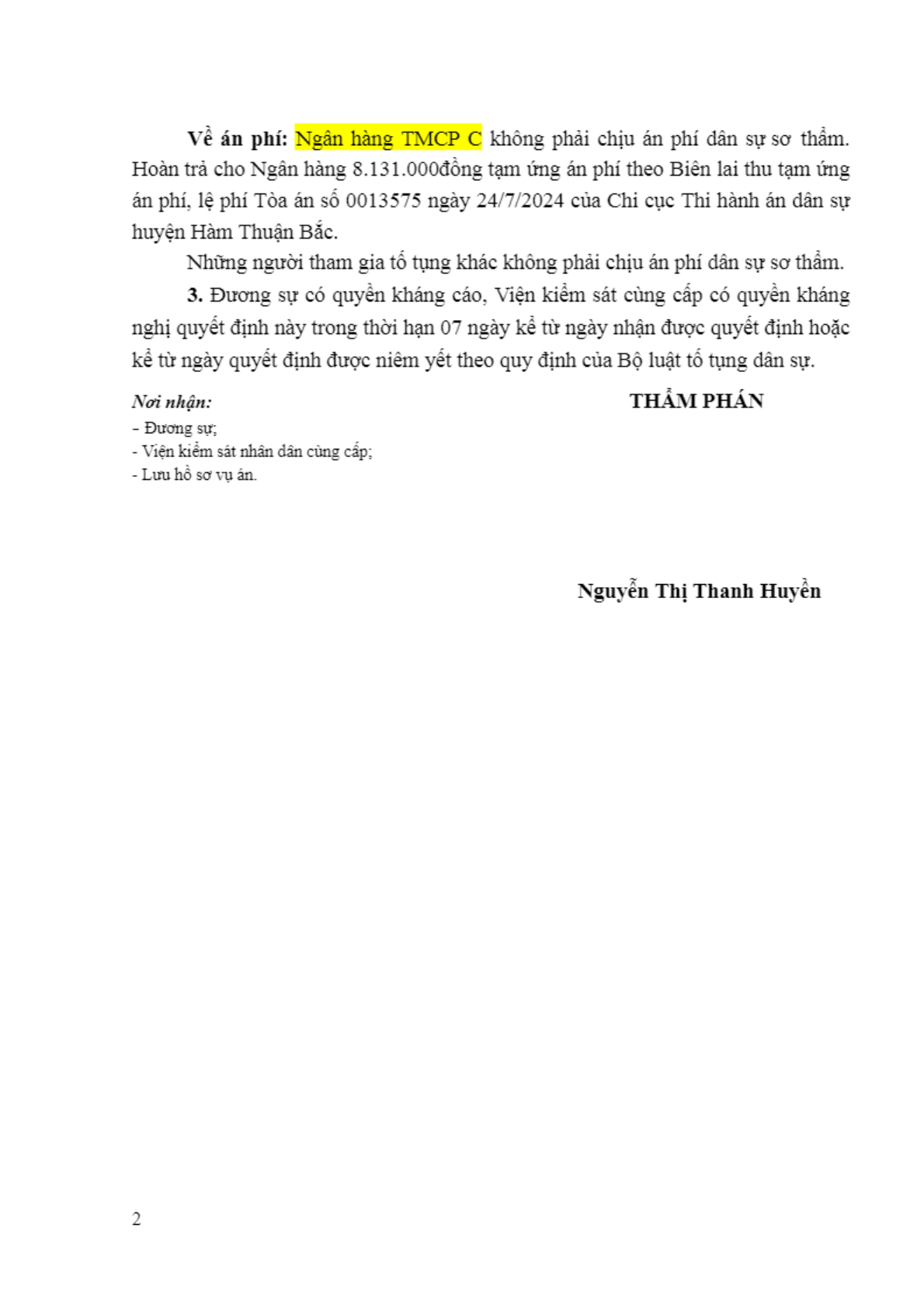 | Tòa án xét xử: | TAND huyện Hàm Thuận Bắc (TAND tỉnh Bình Thuận) |