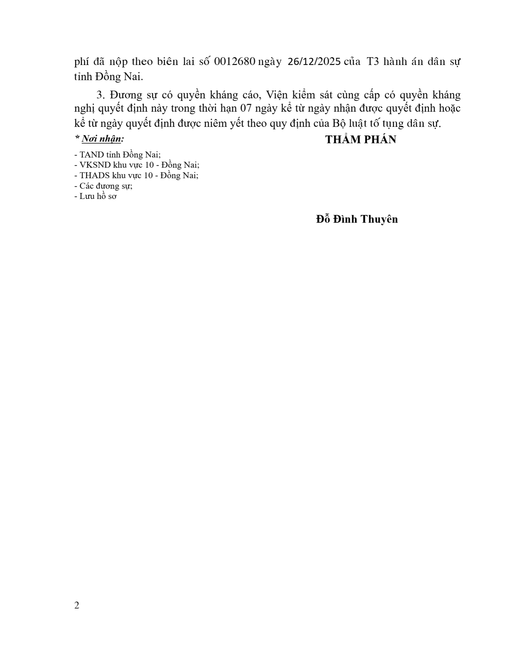 | Tòa án xét xử: | Tòa án nhân dân khu vực 10 - Đồng Nai, tỉnh Đồng Nai |