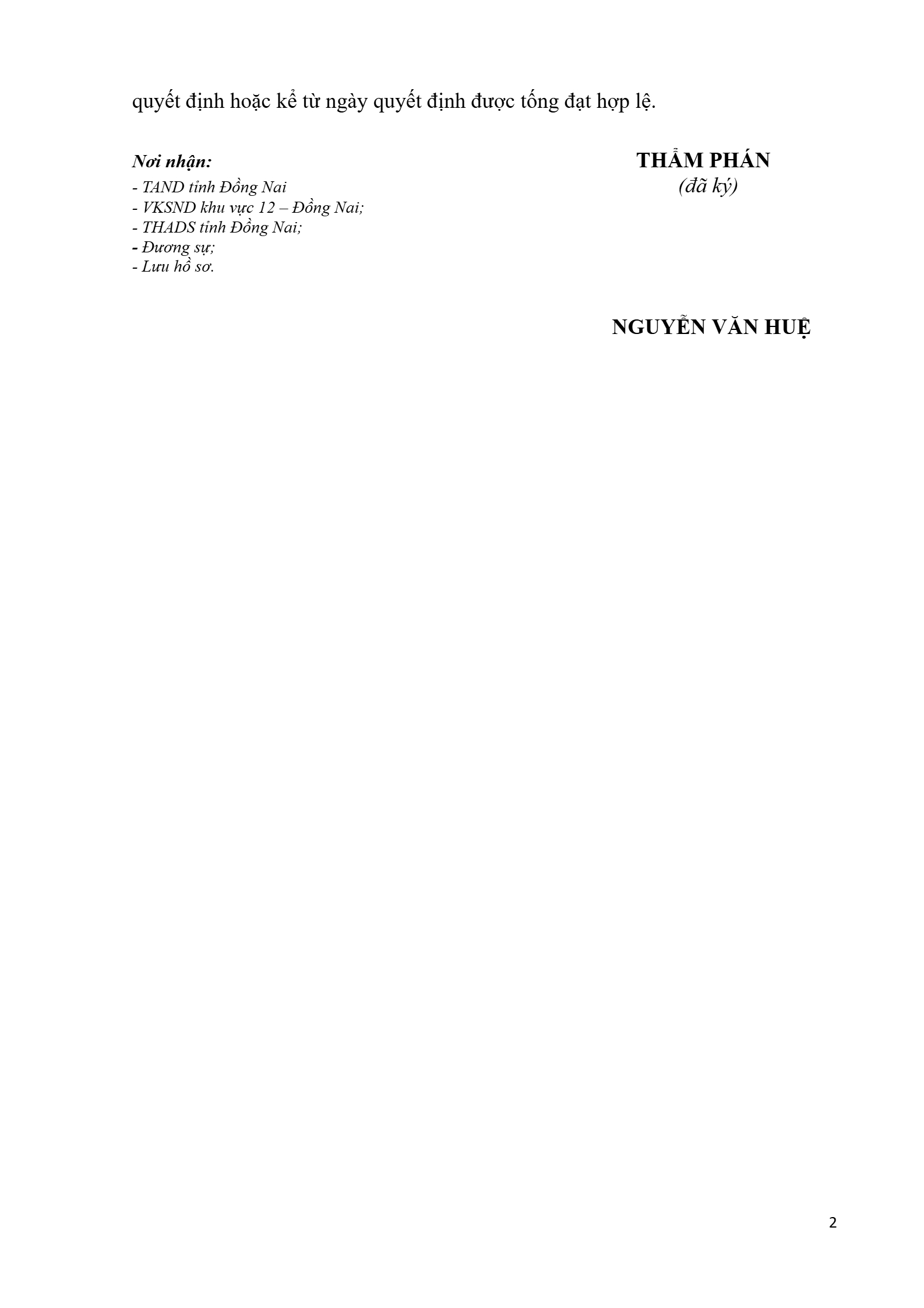 | Tòa án xét xử: | Tòa án nhân dân khu vực 12 - Đồng Nai, tỉnh Đồng Nai |