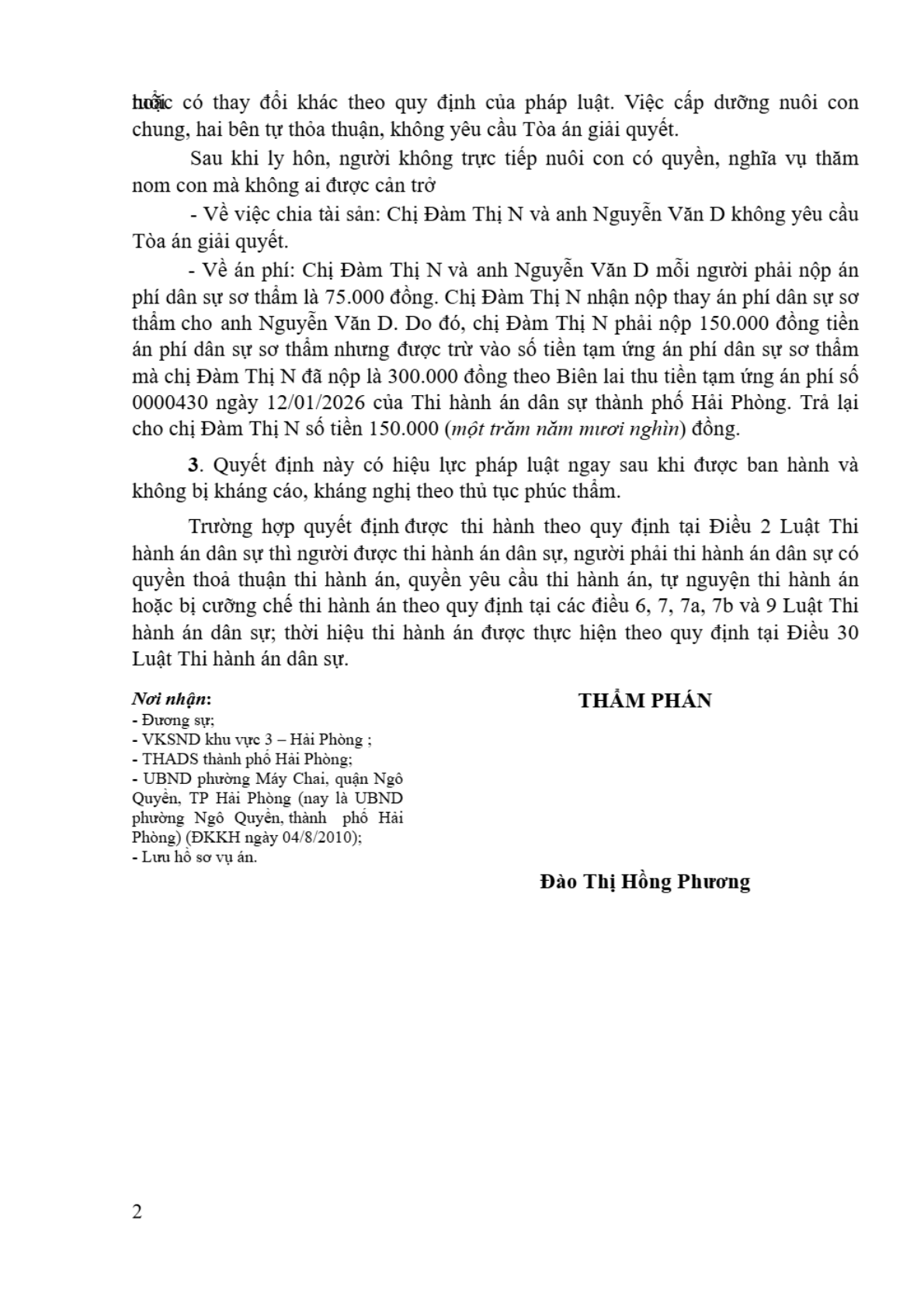 | Tòa án xét xử: | Tòa án nhân dân khu vực 3 - Hải Phòng, TP. Hải Phòng |