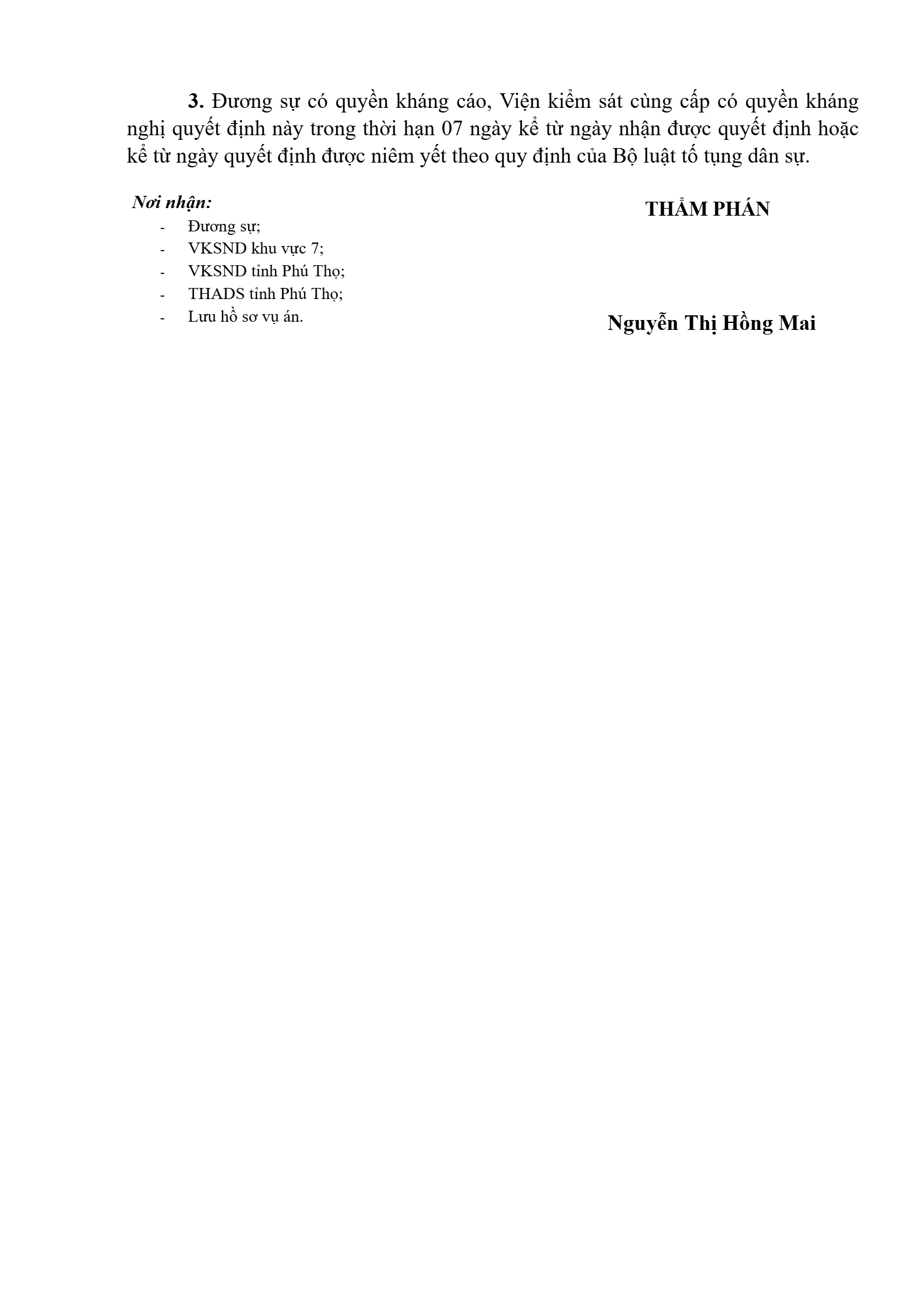 | Tòa án xét xử: | Tòa án nhân dân khu vực 7 - Phú Thọ, tỉnh Phú Thọ |