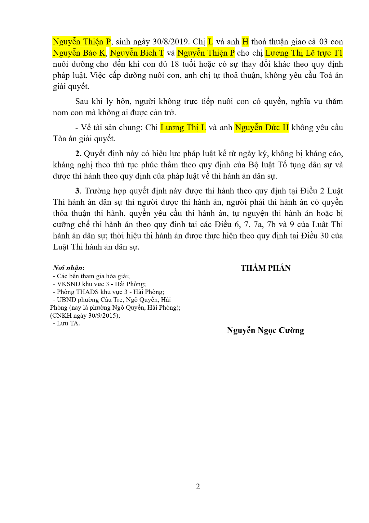 | Tòa án xét xử: | Tòa án nhân dân khu vực 3 - Hải Phòng, TP. Hải Phòng |