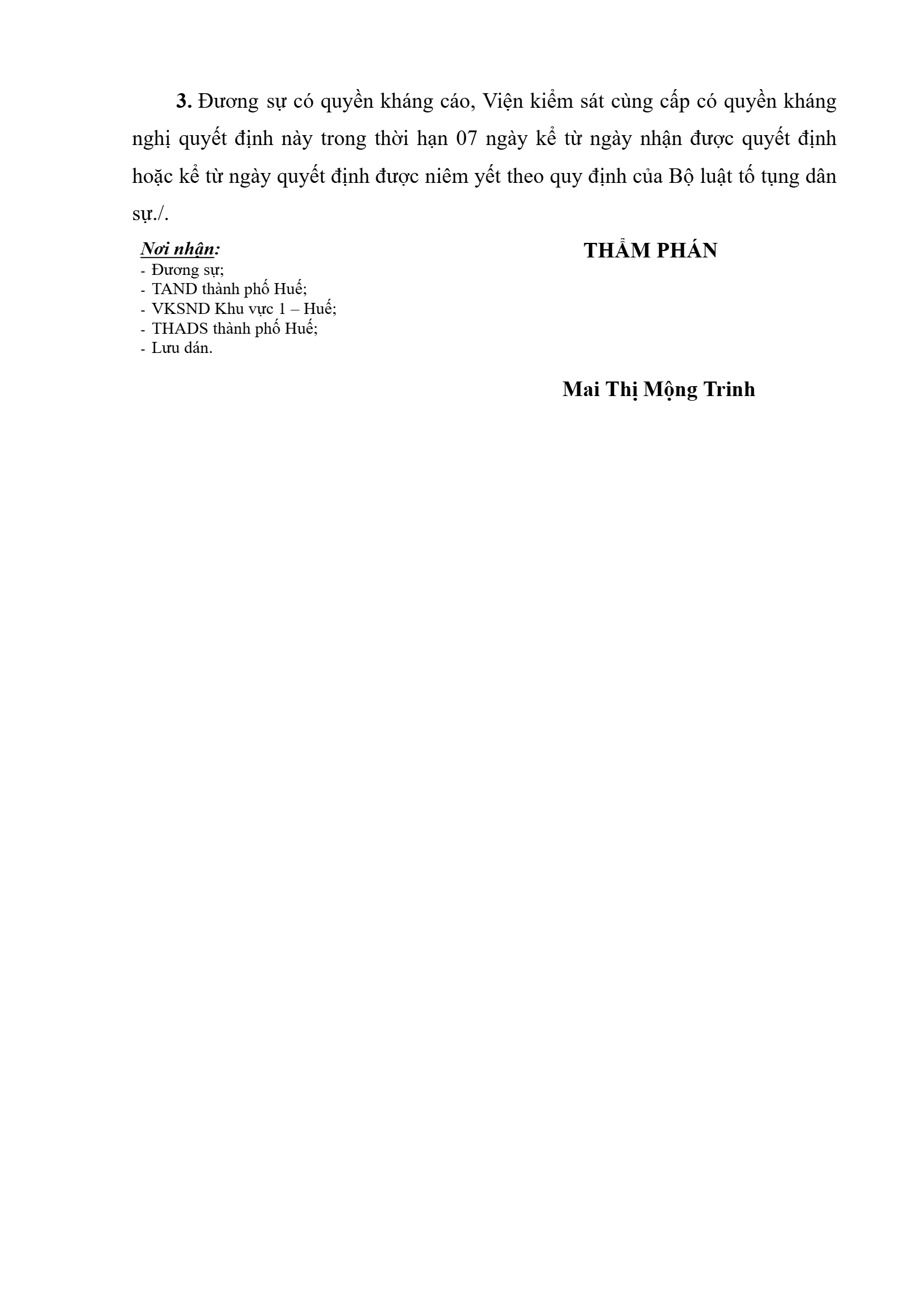 | Tòa án xét xử: | Tòa án nhân dân khu vực 1 - Huế, TP. Huế |
