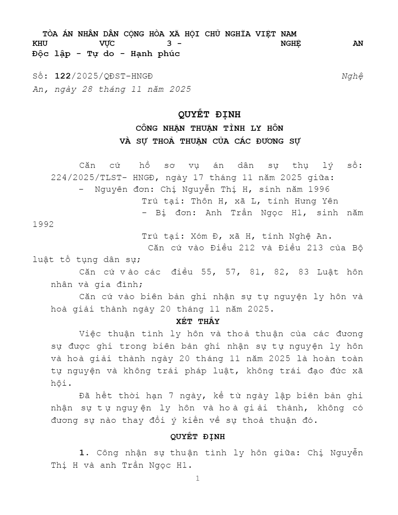 | Số hiệu: | 122/2025/QĐST-HNGĐ |
