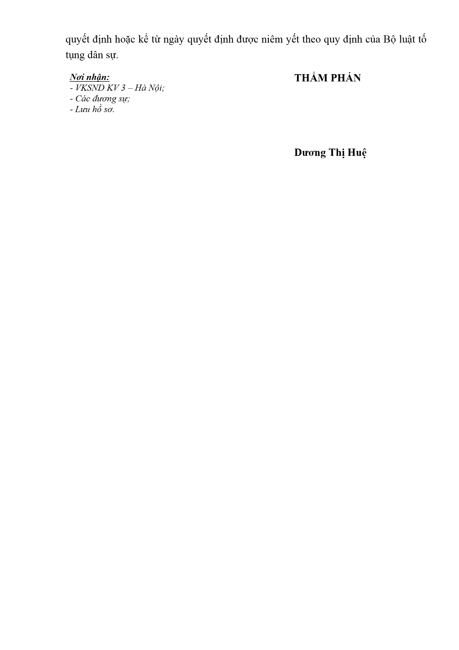 | Tòa án xét xử: | Tòa án nhân dân khu vực 3 - Hà Nội, TP. Hà Nội |