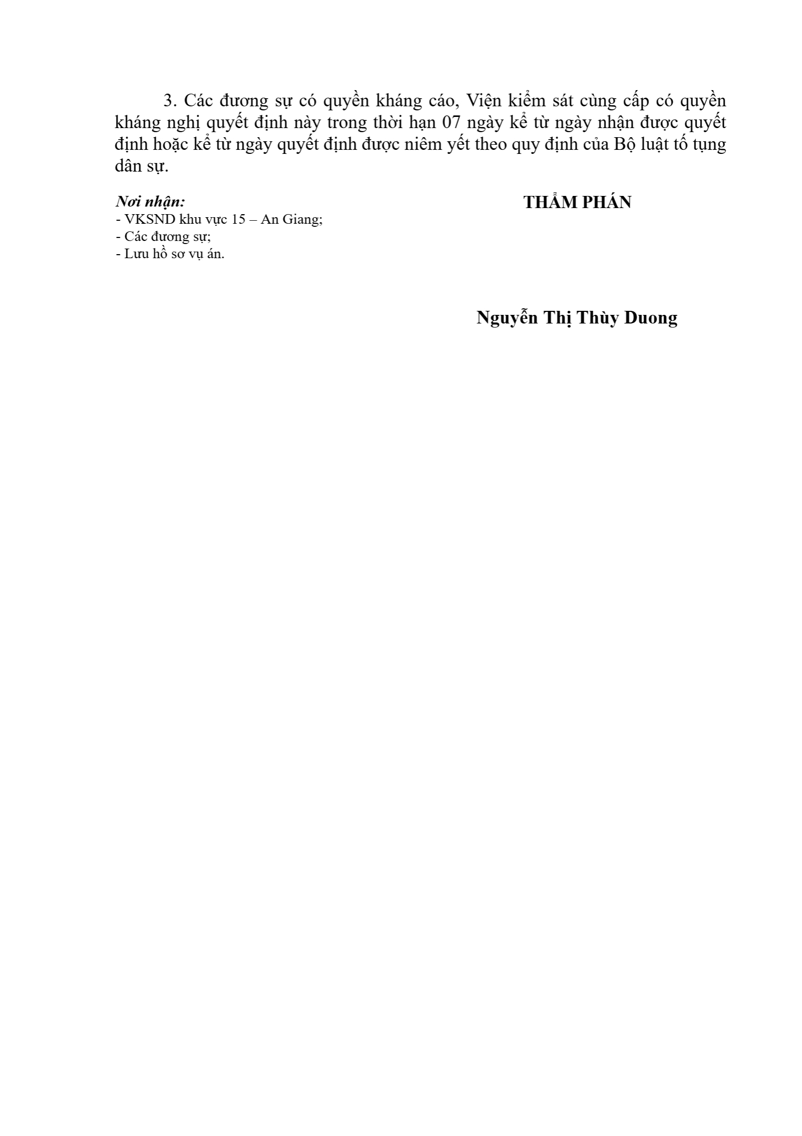 | Tòa án xét xử: | Tòa án nhân dân khu vực 15 - An Giang, tỉnh An Giang |