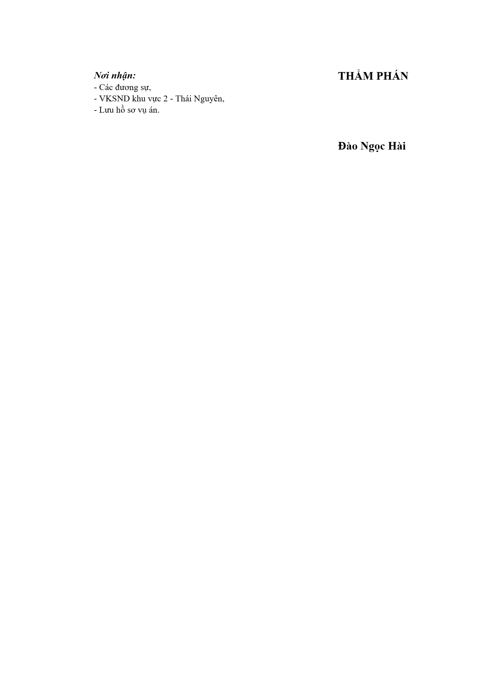 | Tòa án xét xử: | Tòa án nhân dân khu vực 2 - Thái Nguyên, tỉnh Thái Nguyên |