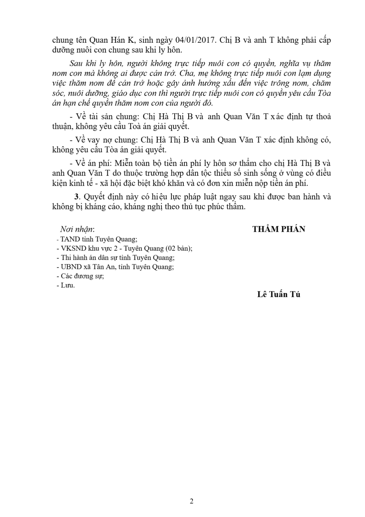 | Tòa án xét xử: | Tòa án nhân dân khu vực 2 - Tuyên Quang, tỉnh Tuyên Quang |