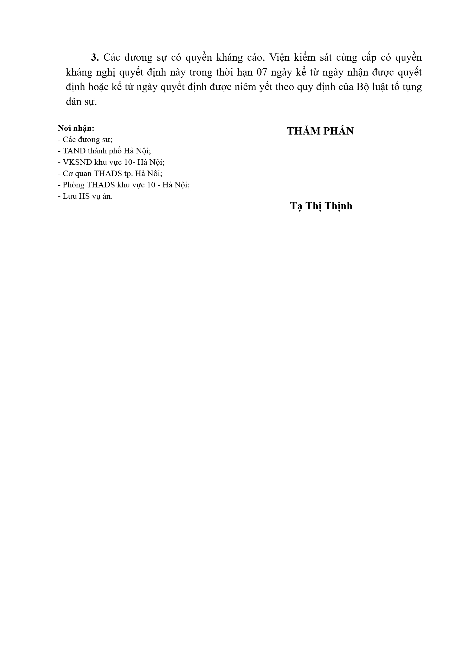 | Tòa án xét xử: | Tòa án nhân dân khu vực 10 - Hà Nội, TP. Hà Nội |