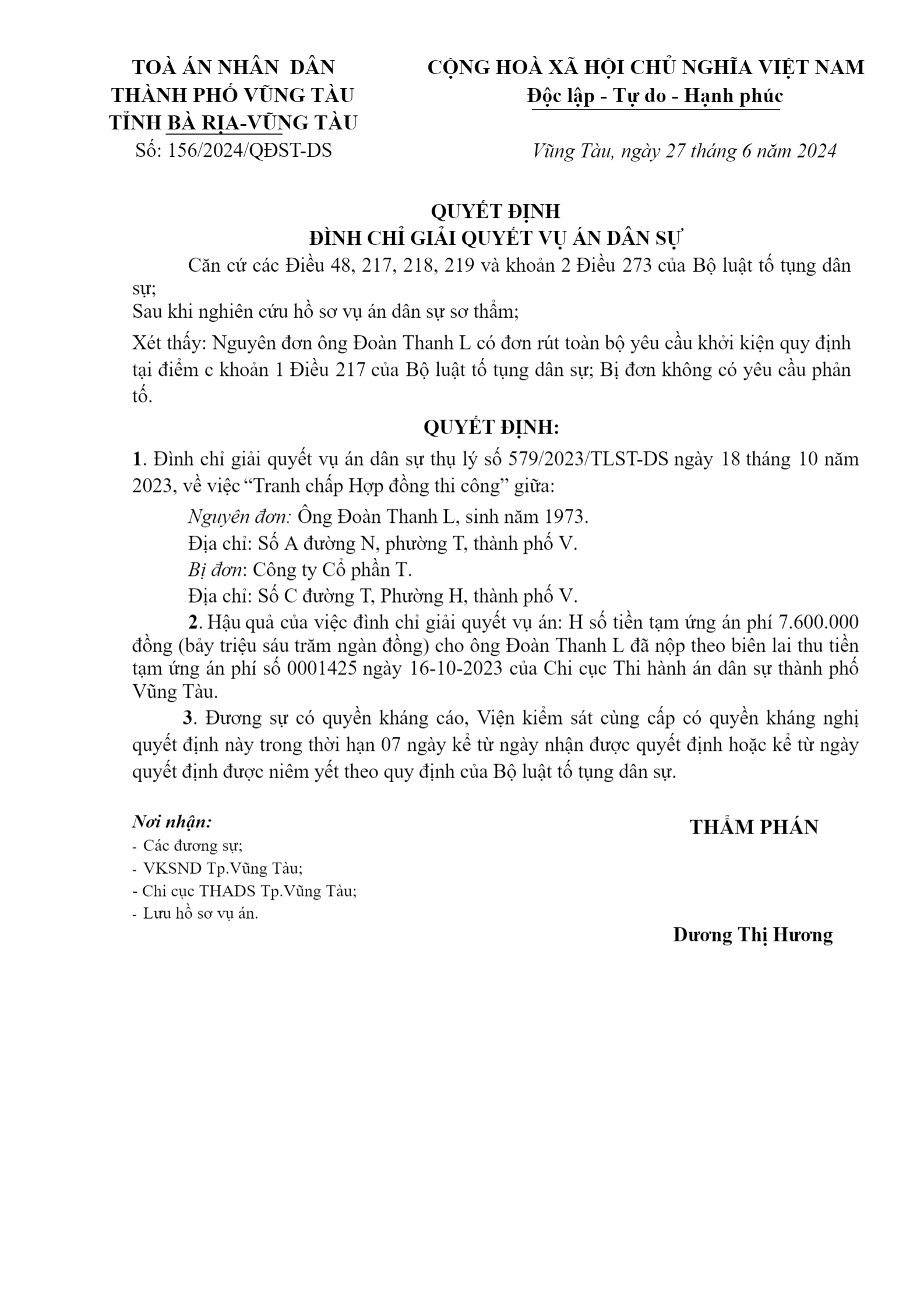 | Số hiệu: | 156/2024/QĐST-DS |