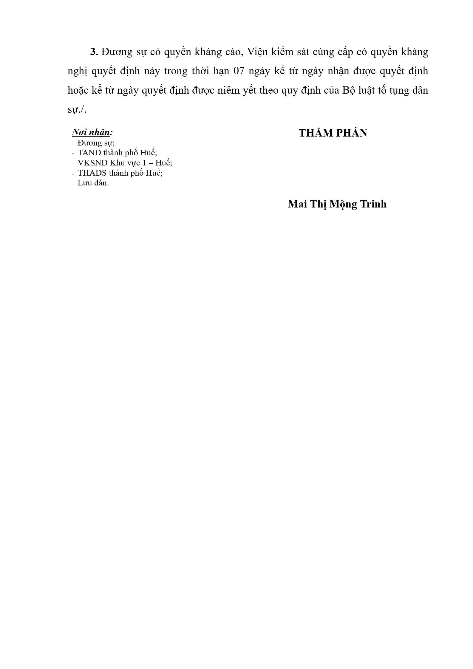 | Tòa án xét xử: | Tòa án nhân dân khu vực 1 - Huế, TP. Huế |