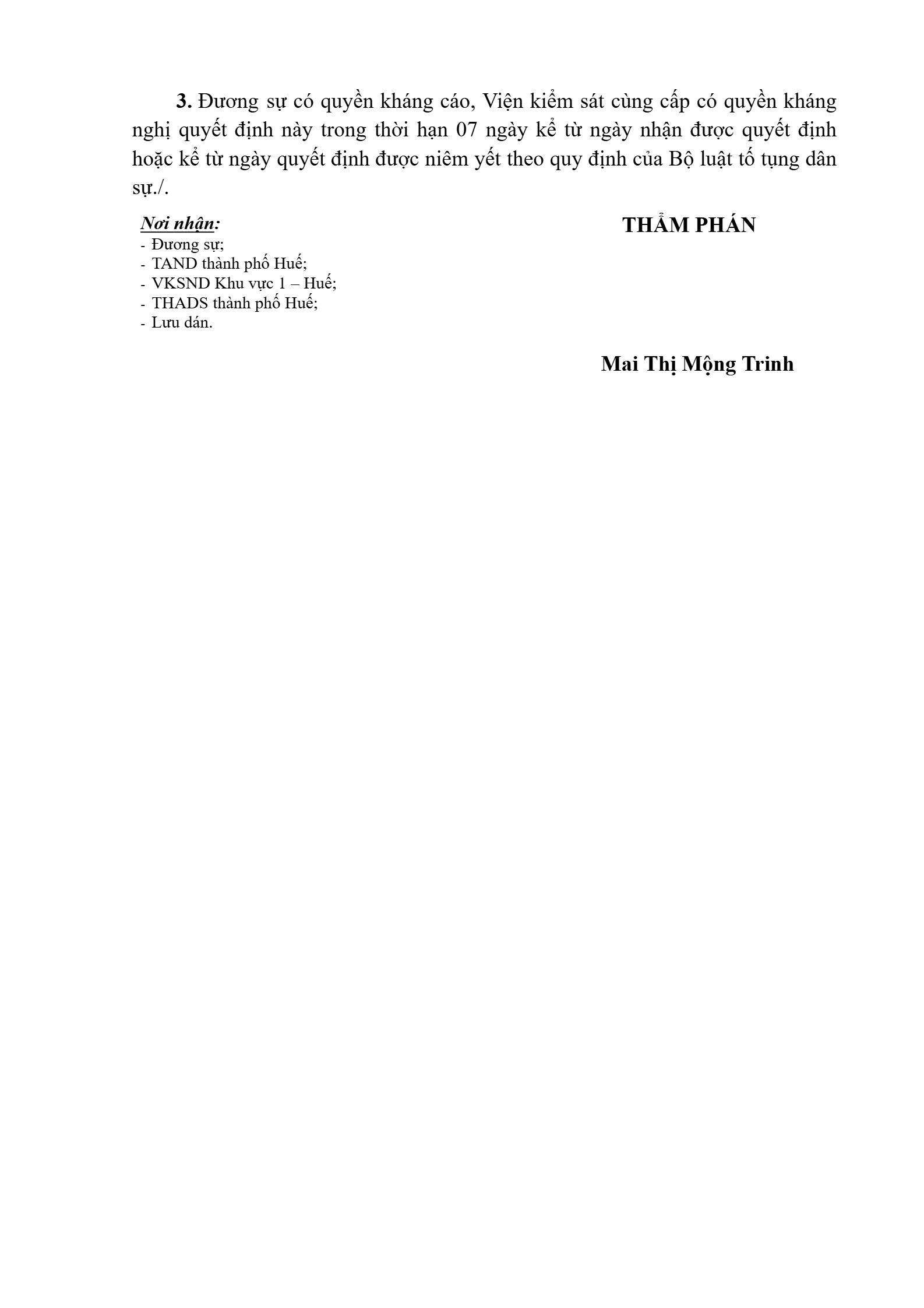| Tòa án xét xử: | Tòa án nhân dân khu vực 1 - Huế, TP. Huế |