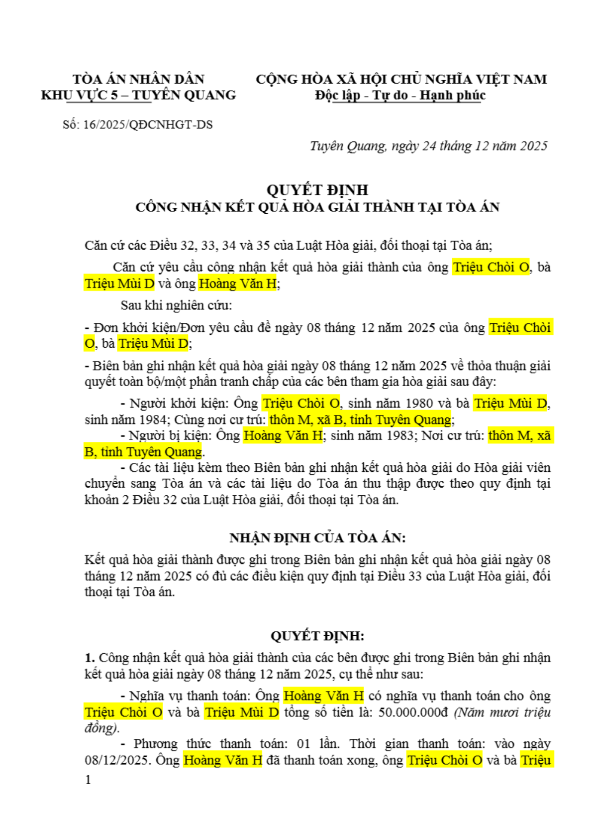 | Tòa án xét xử: | Tòa án nhân dân khu vực 5 - Tuyên Quang, tỉnh Tuyên Quang |