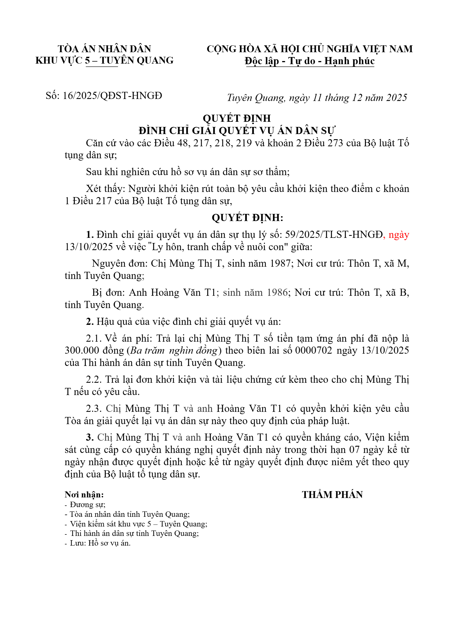 | Số hiệu: | 16/2025/QĐST-HNGĐ |