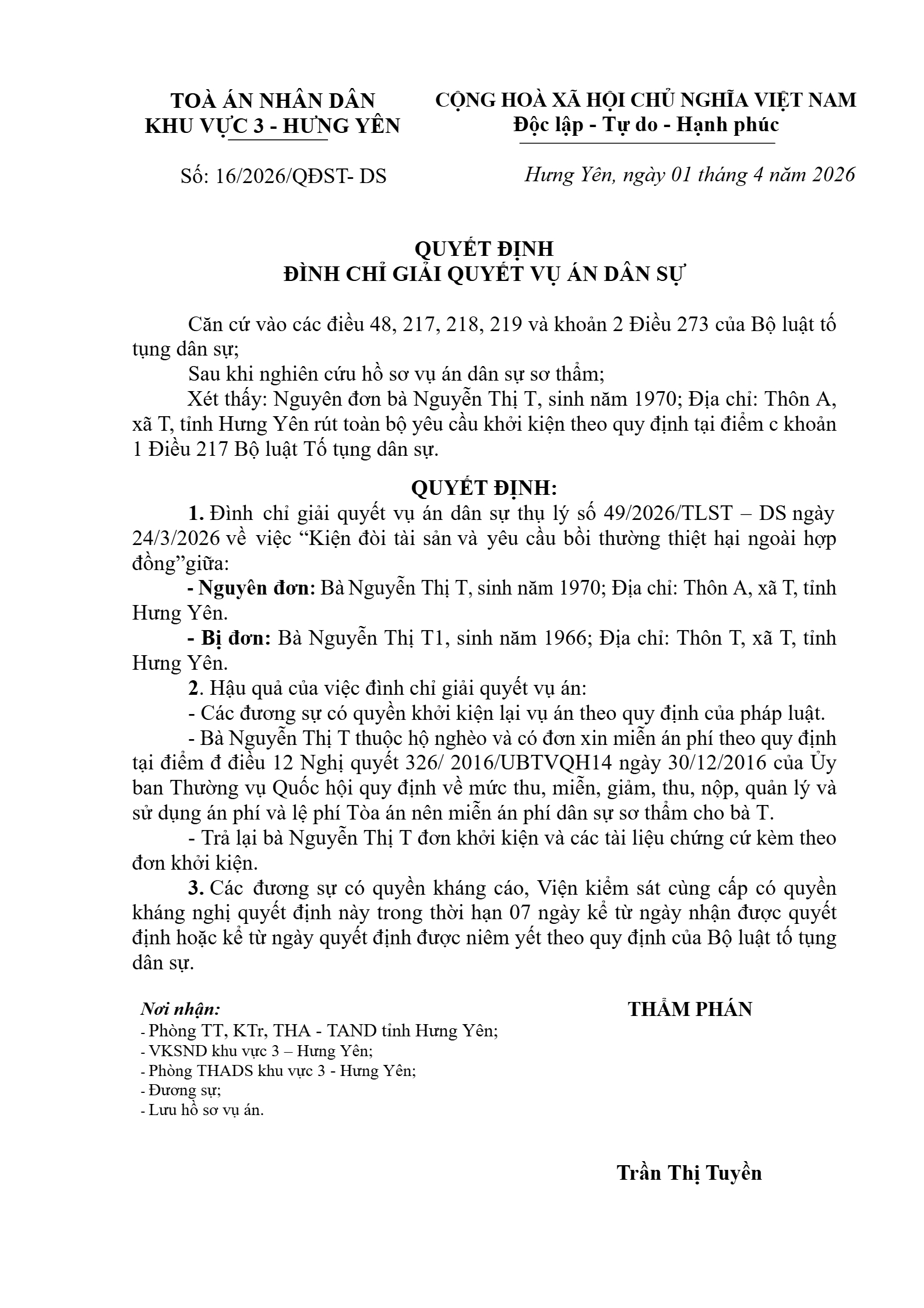 | Số hiệu: | 16/2026/QĐST-DS |