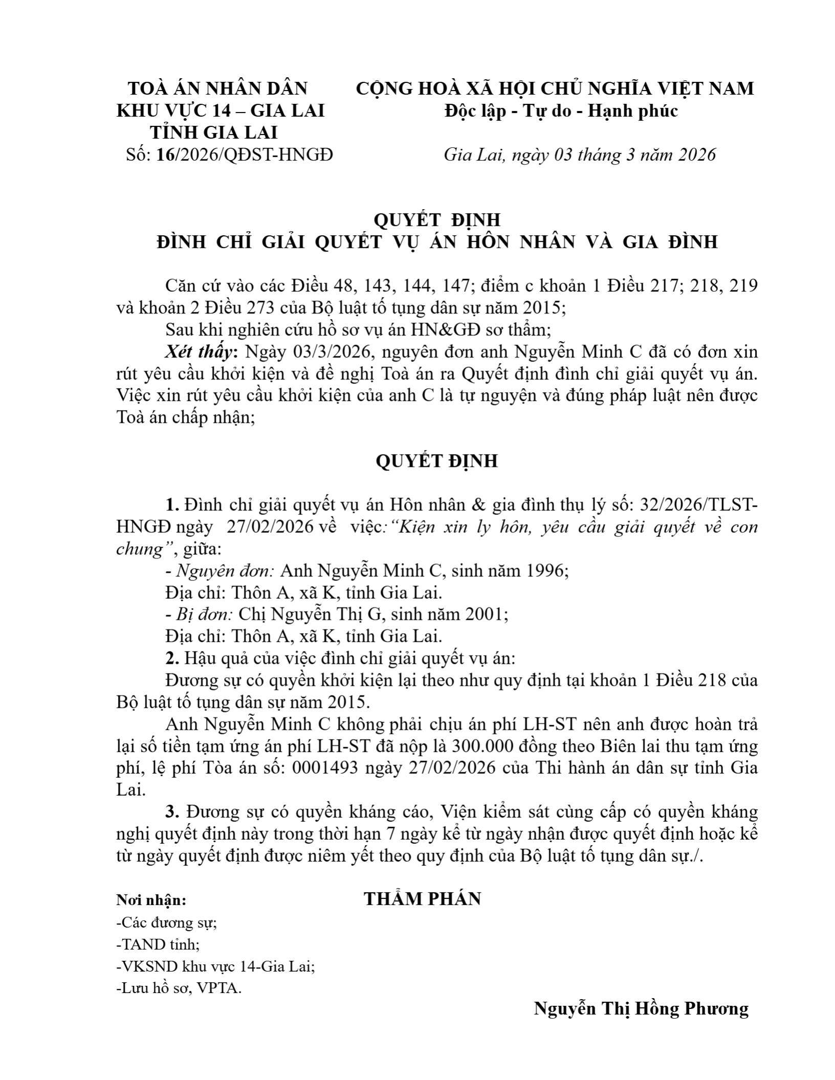 | Số hiệu: | 16/2026/QĐST-HNGĐ |