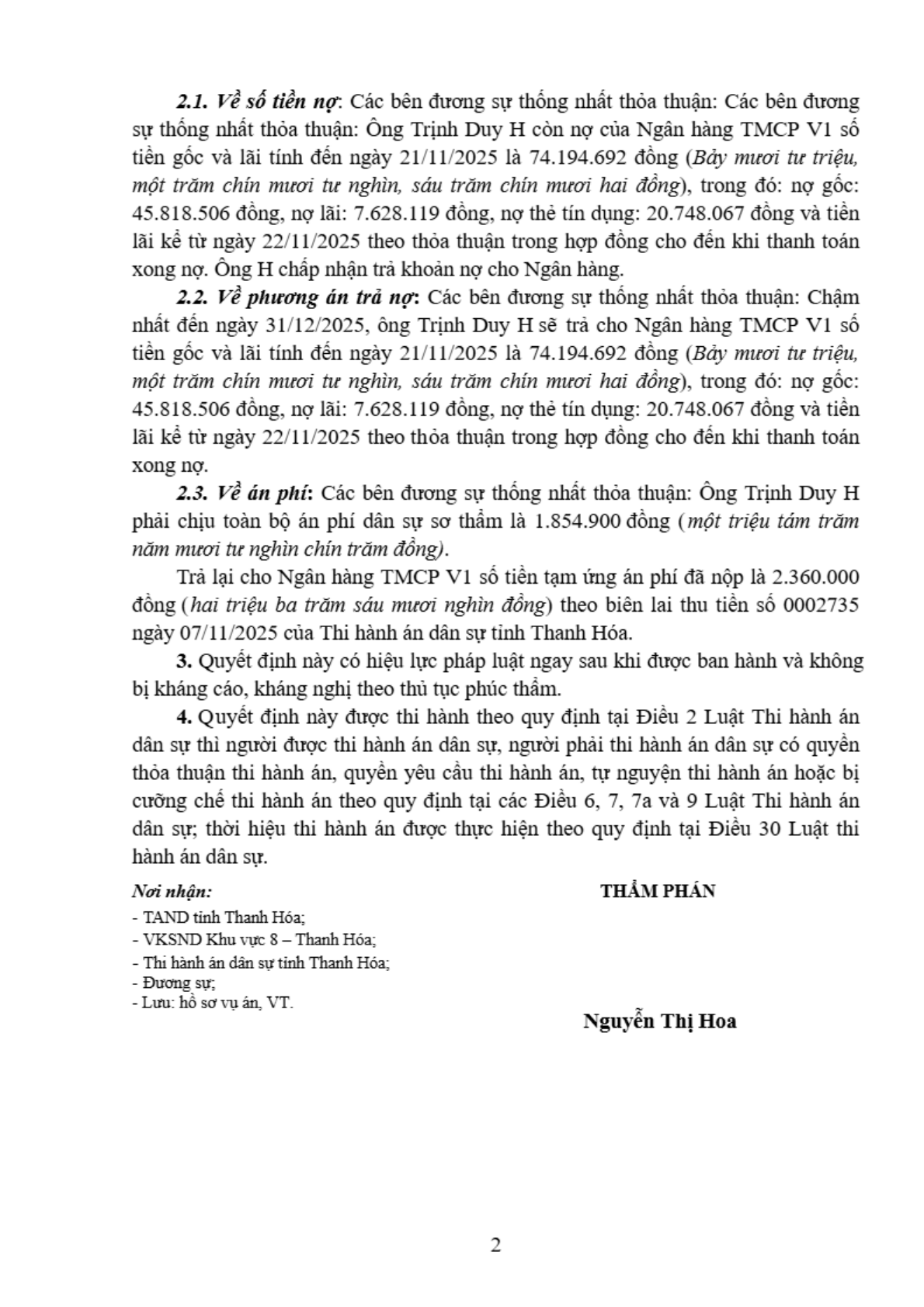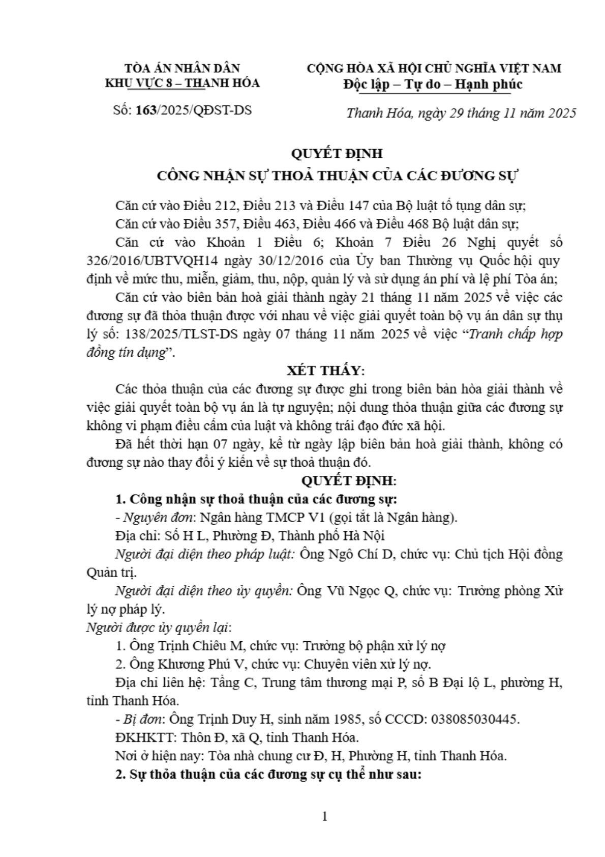 Quyết định số 163/2025/QĐST-DS ngày 29/11/2025 của Tòa án nhân dân khu vực 8 - Thanh Hóa, tỉnh Thanh Hóa về tranh chấp hợp đồng tín dụng