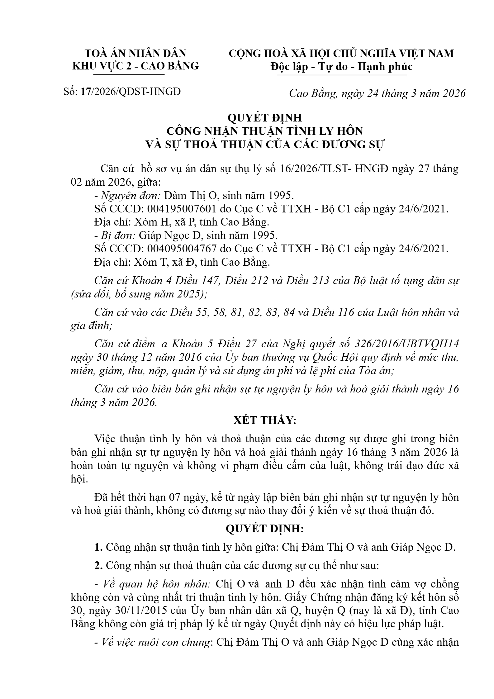 | Số hiệu: | 17/2026/QĐST-HNGĐ |