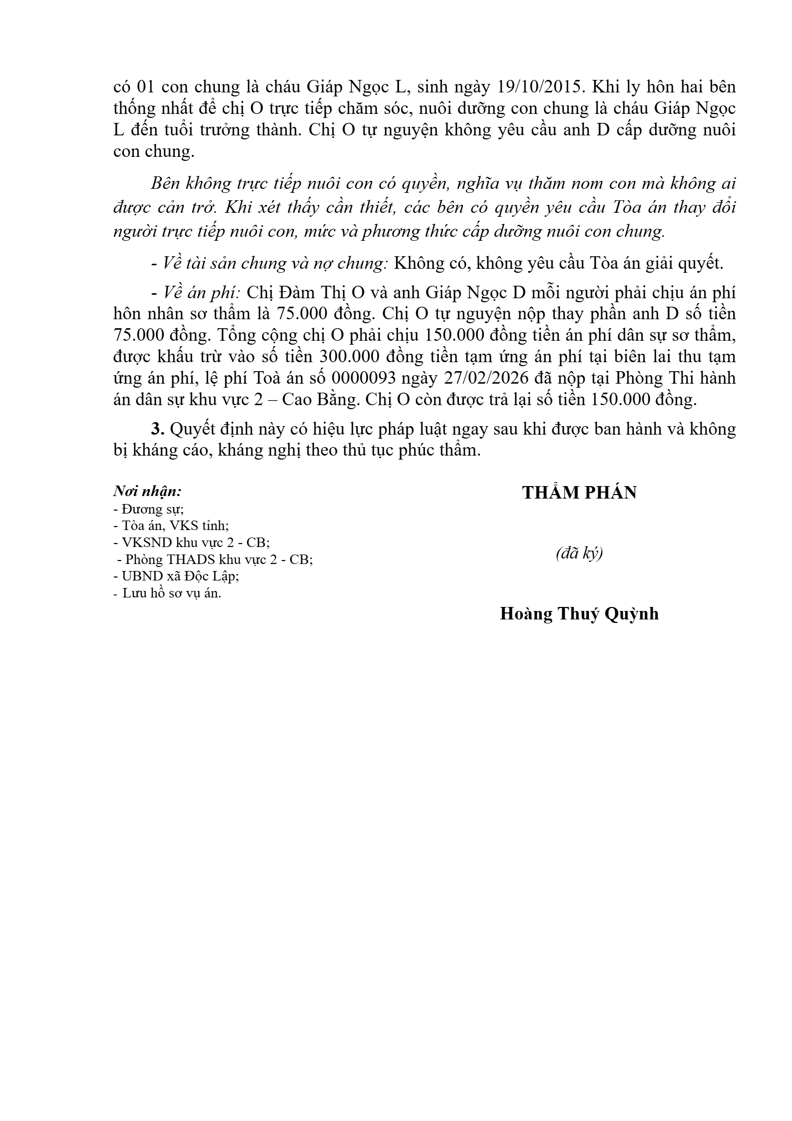 | Tòa án xét xử: | Tòa án nhân dân khu vực 2 - Cao Bằng, tỉnh Cao Bằng |