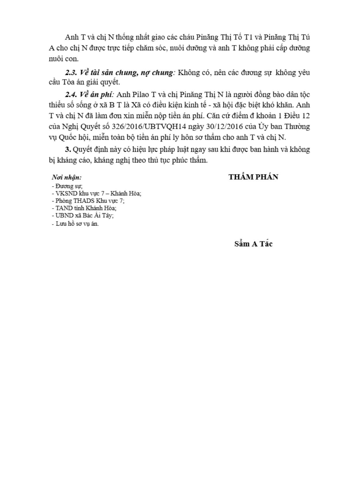 | Thông tin về vụ/việc: | Pilao T - Pinăng Thị N |