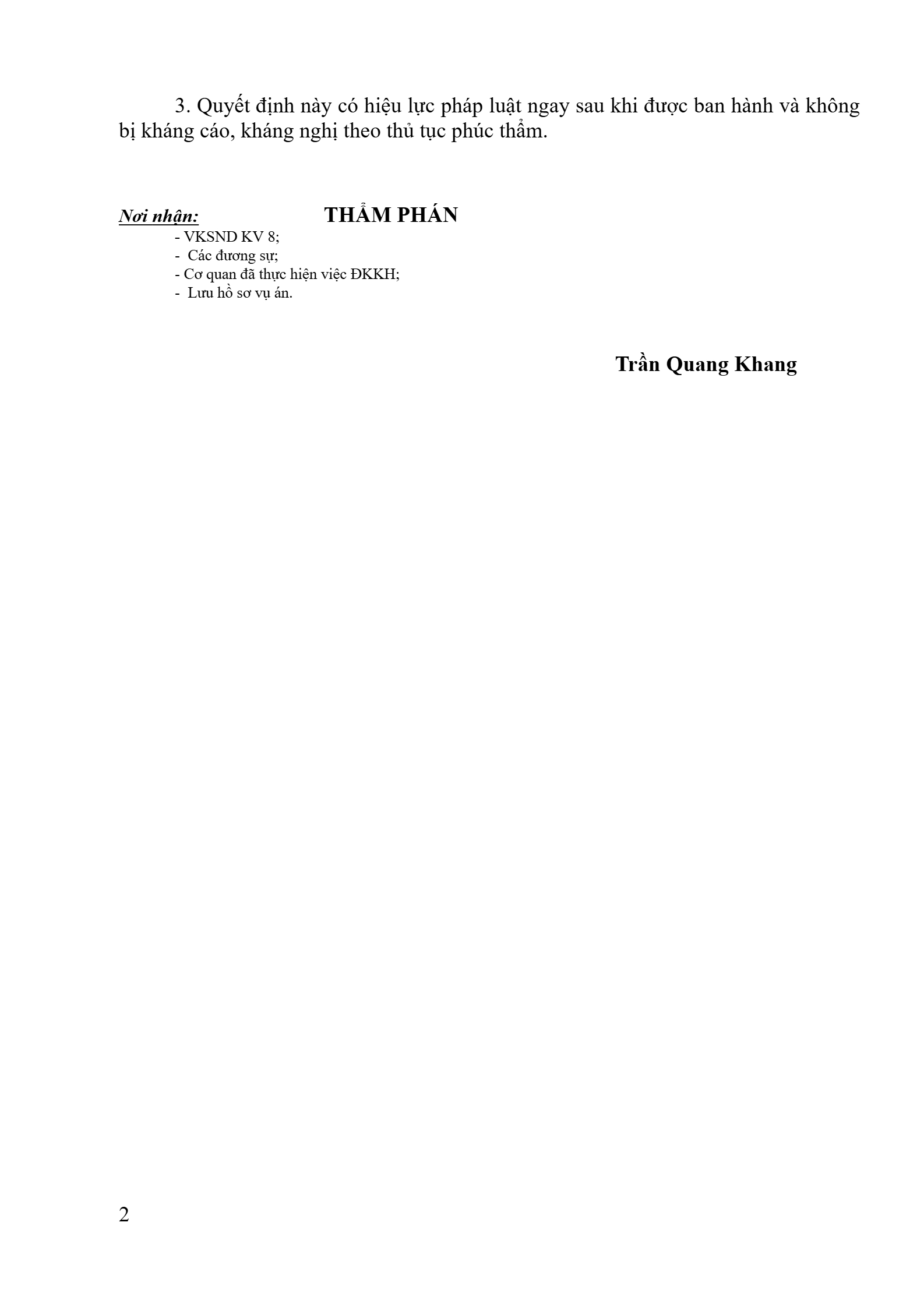 | Tòa án xét xử: | Tòa án nhân dân khu vực 8 - Cà Mau, tỉnh Cà Mau |