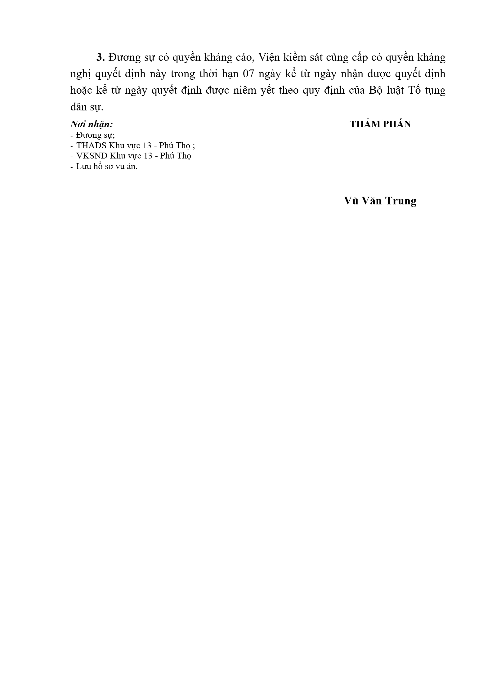 | Tòa án xét xử: | Tòa án nhân dân khu vực 13 - Phú Thọ, tỉnh Phú Thọ |