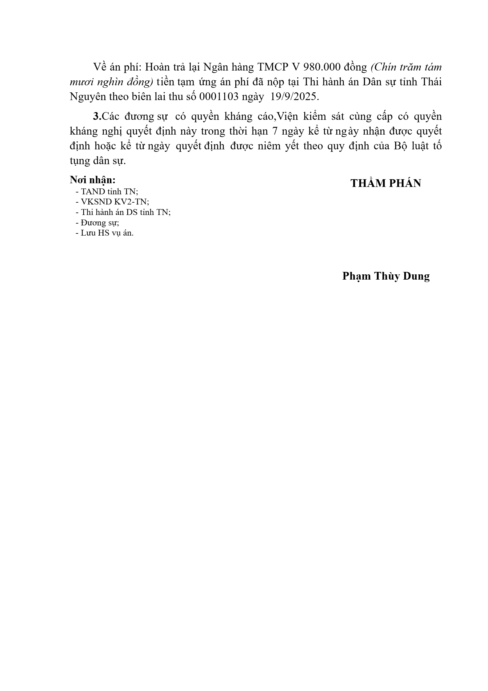 | Tòa án xét xử: | Tòa án nhân dân khu vực 2 - Thái Nguyên, tỉnh Thái Nguyên |
