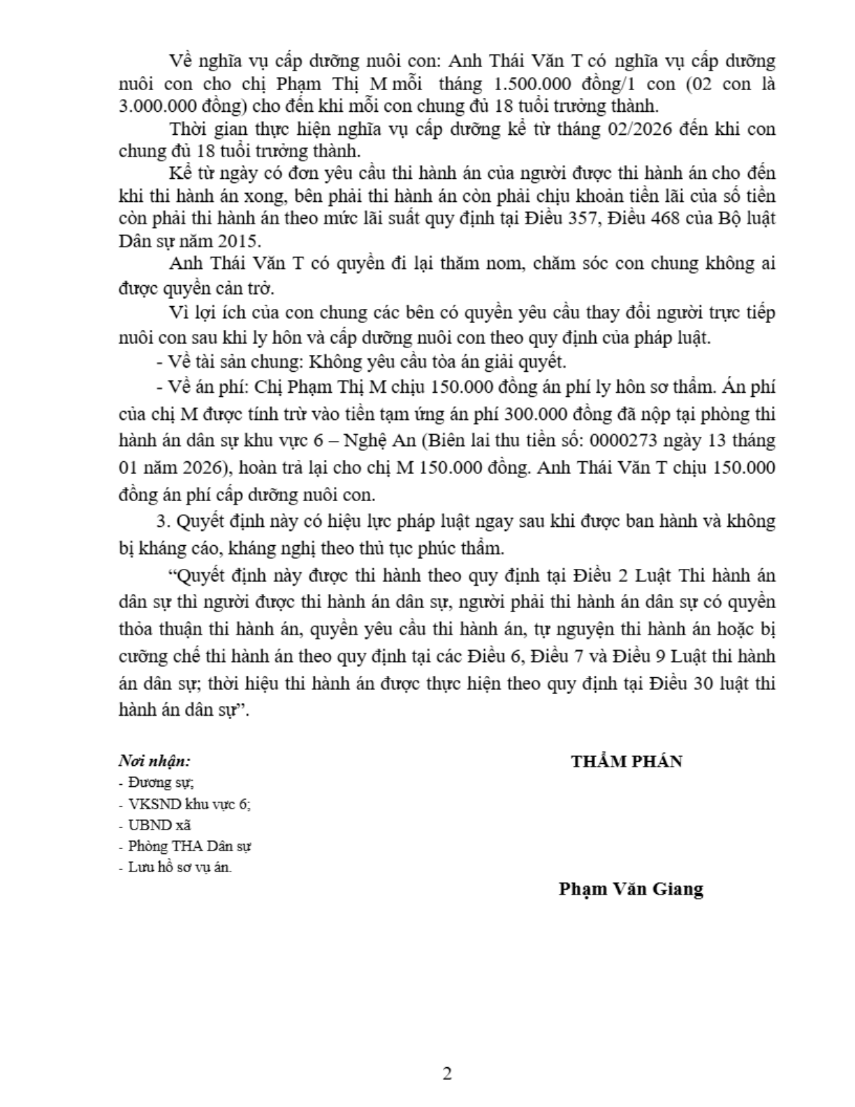 | Tòa án xét xử: | Tòa án nhân dân khu vực 6 - Nghệ An, tỉnh Nghệ An |